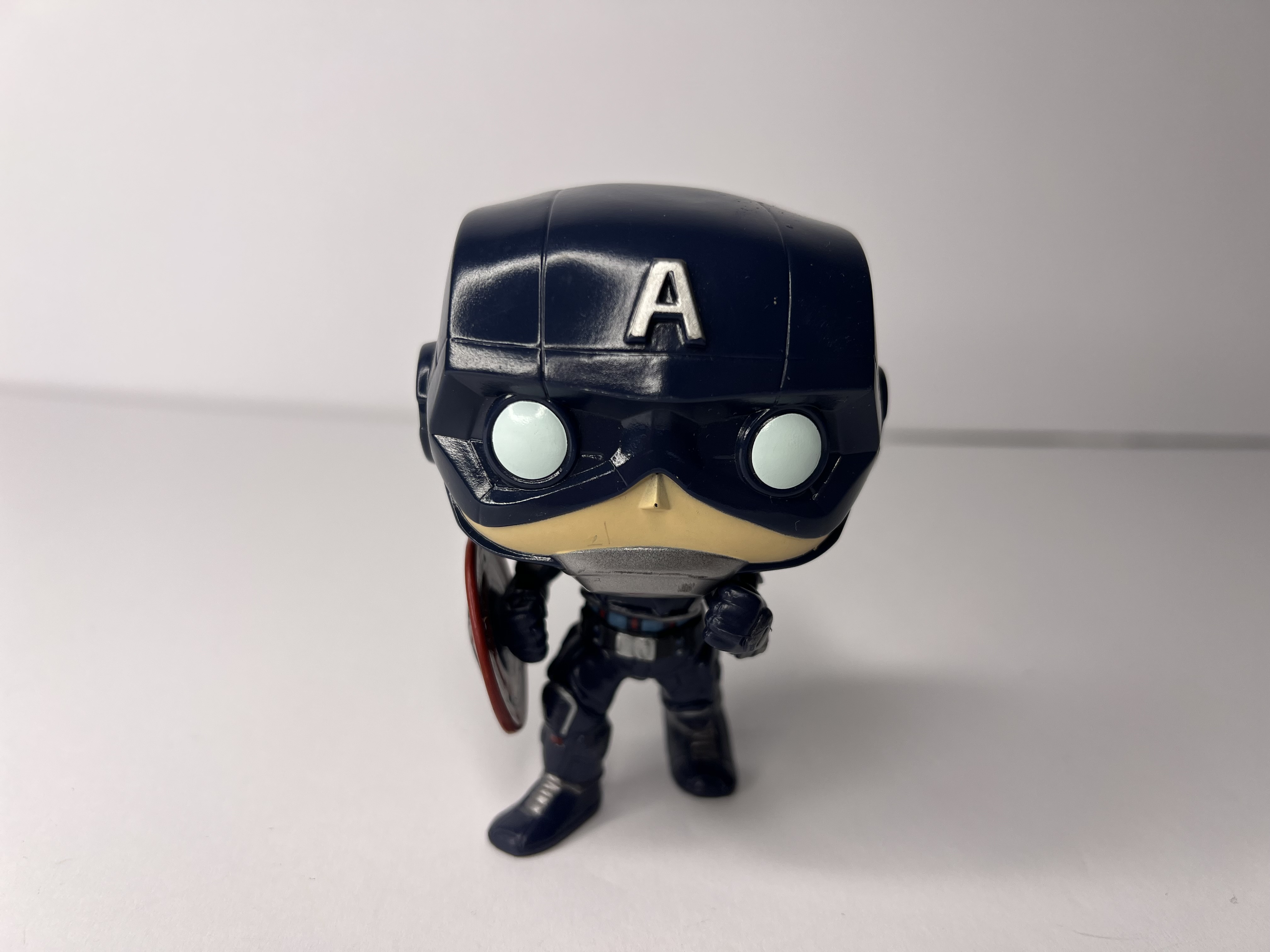 🛡️Stealth mode: activated. Captain America #627 shows up in his sleek S.H.I.E.L.D. infiltration suit from The Winter Soldier, ready to lay low and punch high. This Pop! ditches the star-spangled flair for tactical coolness — dark navy armor, combat boots, and that legendary vibranium shield tucked close and tight. His glowing eyes and muted colors scream “mission critical.”