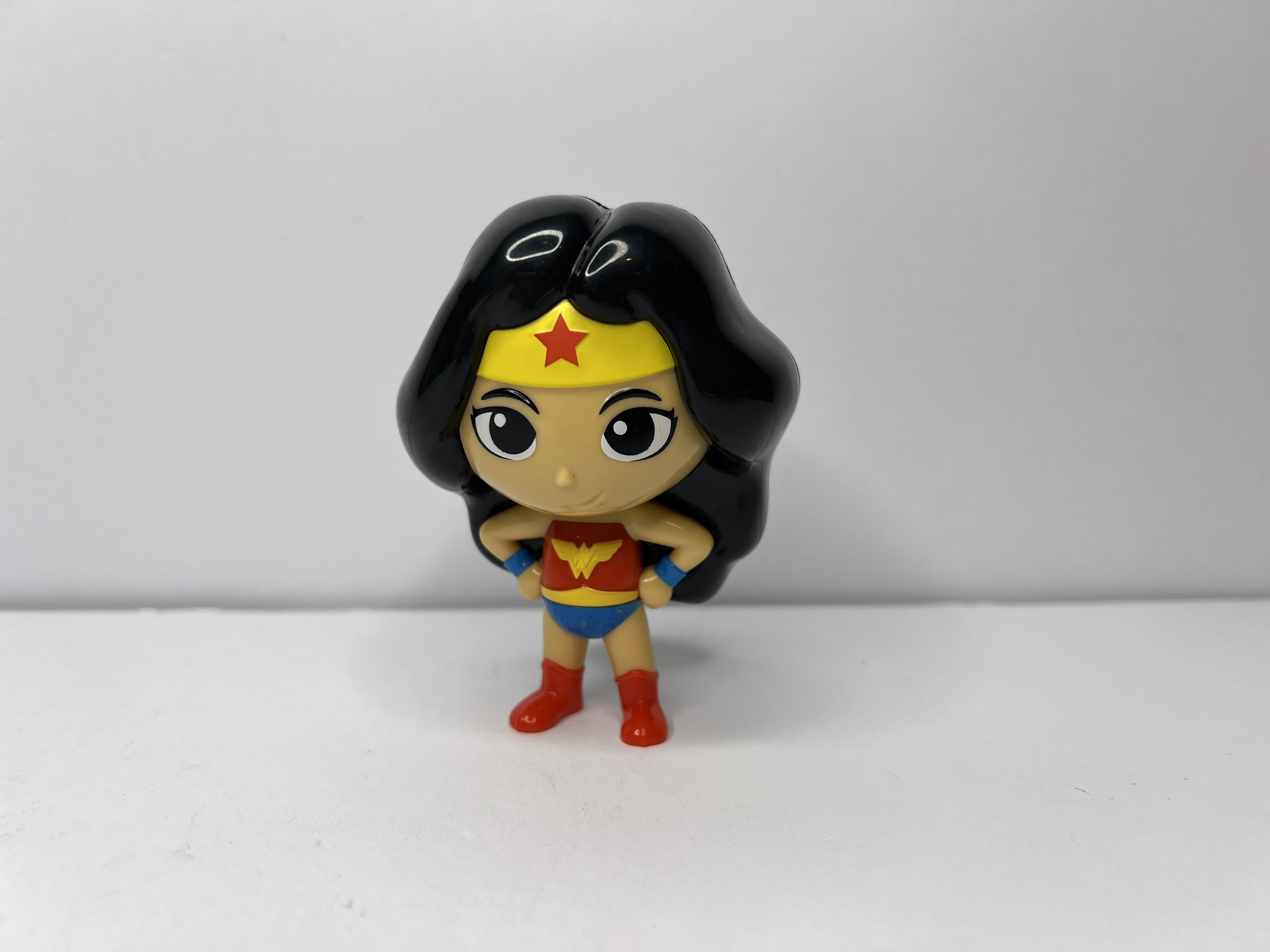 She’s fierce, she’s fabulous, and she’s fun-sized! This mini Wonder Woman may be pint-sized, but don’t let the big eyes and glossy hair fool you—she’s ready to lasso some truth and smack down injustice with adorable authority. Whether she’s guarding your shelf, your snacks, or your secrets, this Amazonian warrior is all about power poses, peace, and punching evil in the kneecaps.