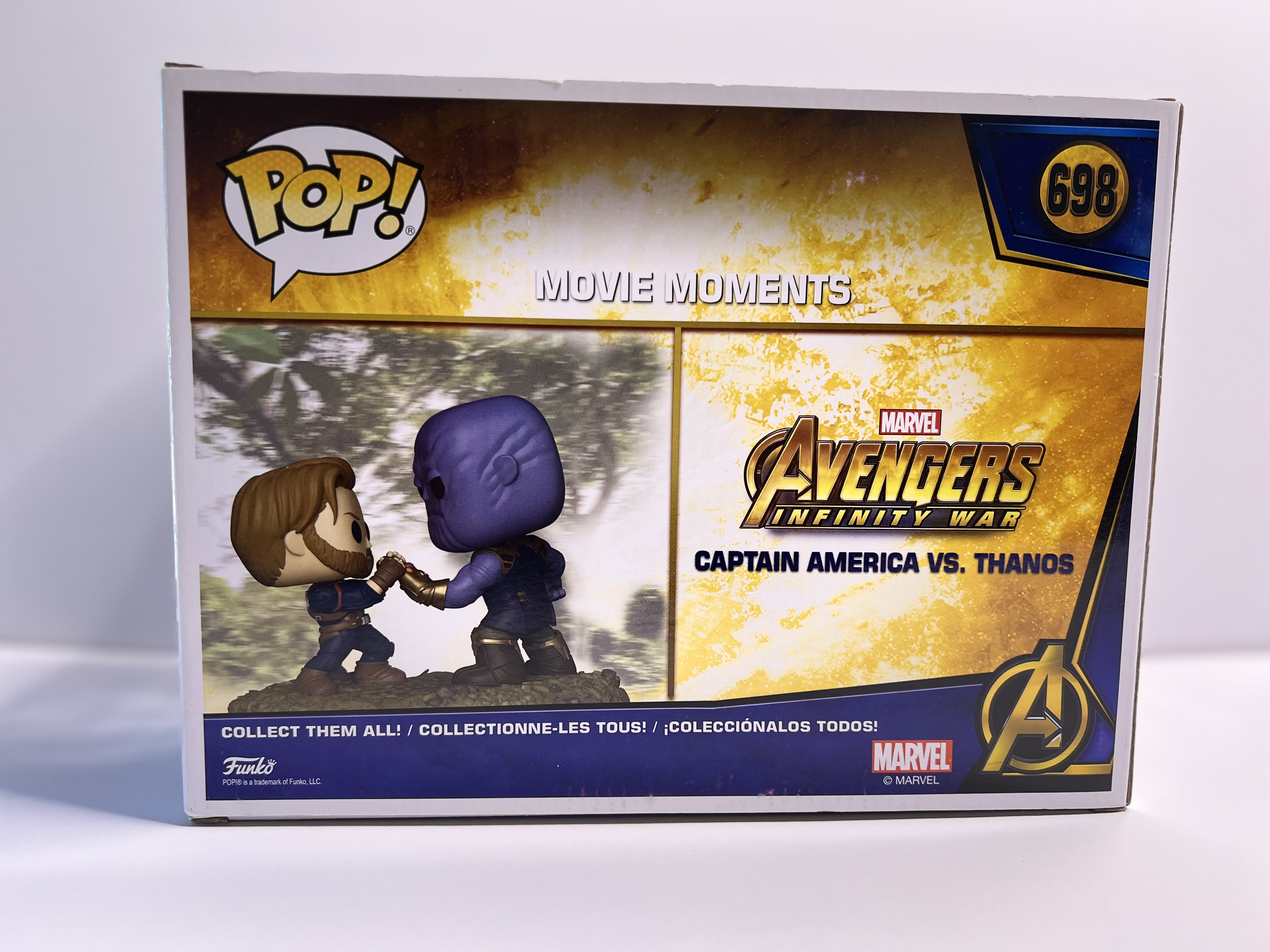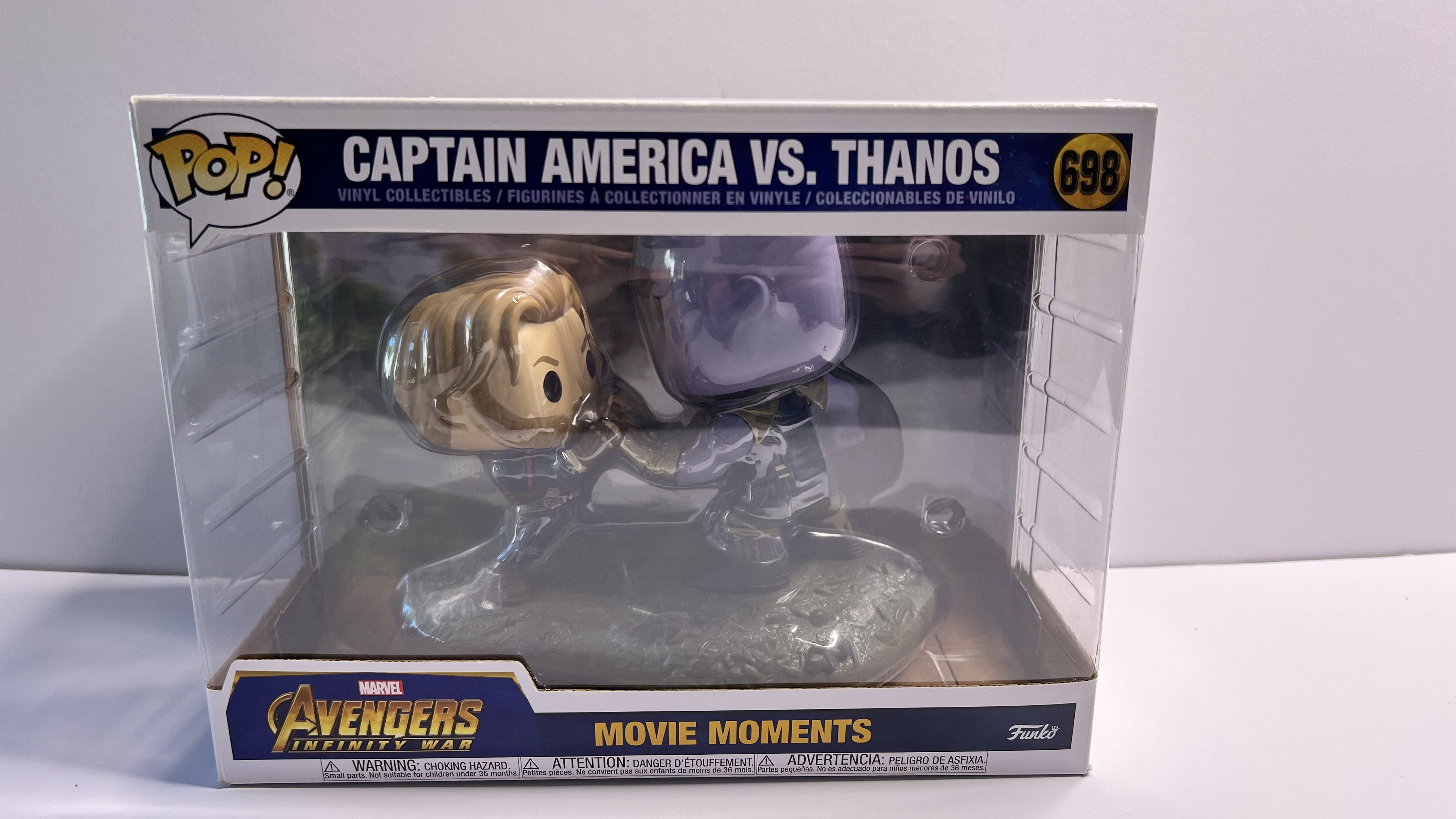 Pop! #698 immortalizes that scene where Cap held off the Mad Titan with pure arm strength and pure stubbornness. This battle of willpower and cosmic bling is a must-have for any Marvel collector. The figure is pristine, but the box has noticeable wear – including a top crease and edge bend – like it's just returned from the battlefield. Still a heroic addition for out-of-box fans or those who don’t mind a little display drama.