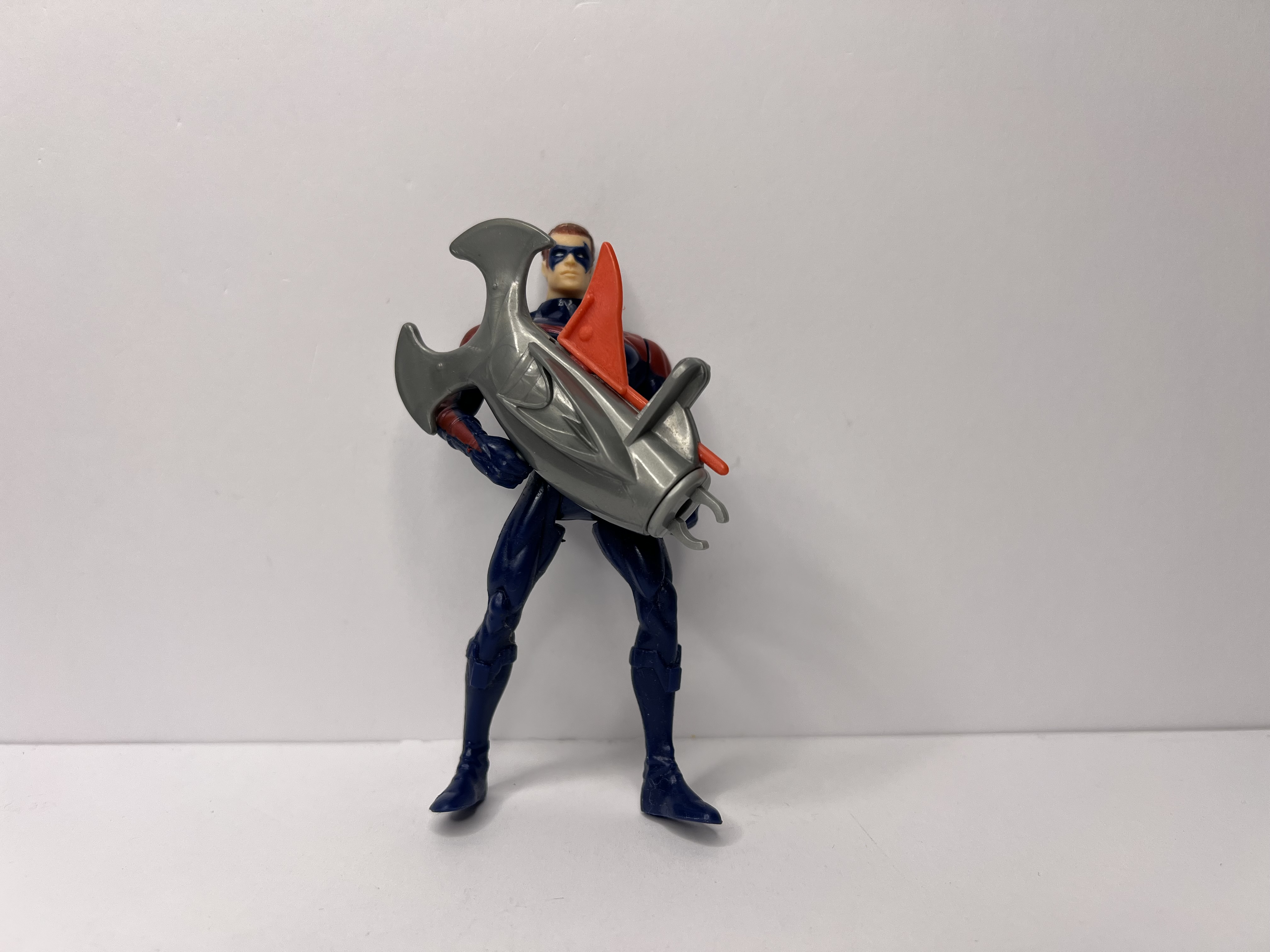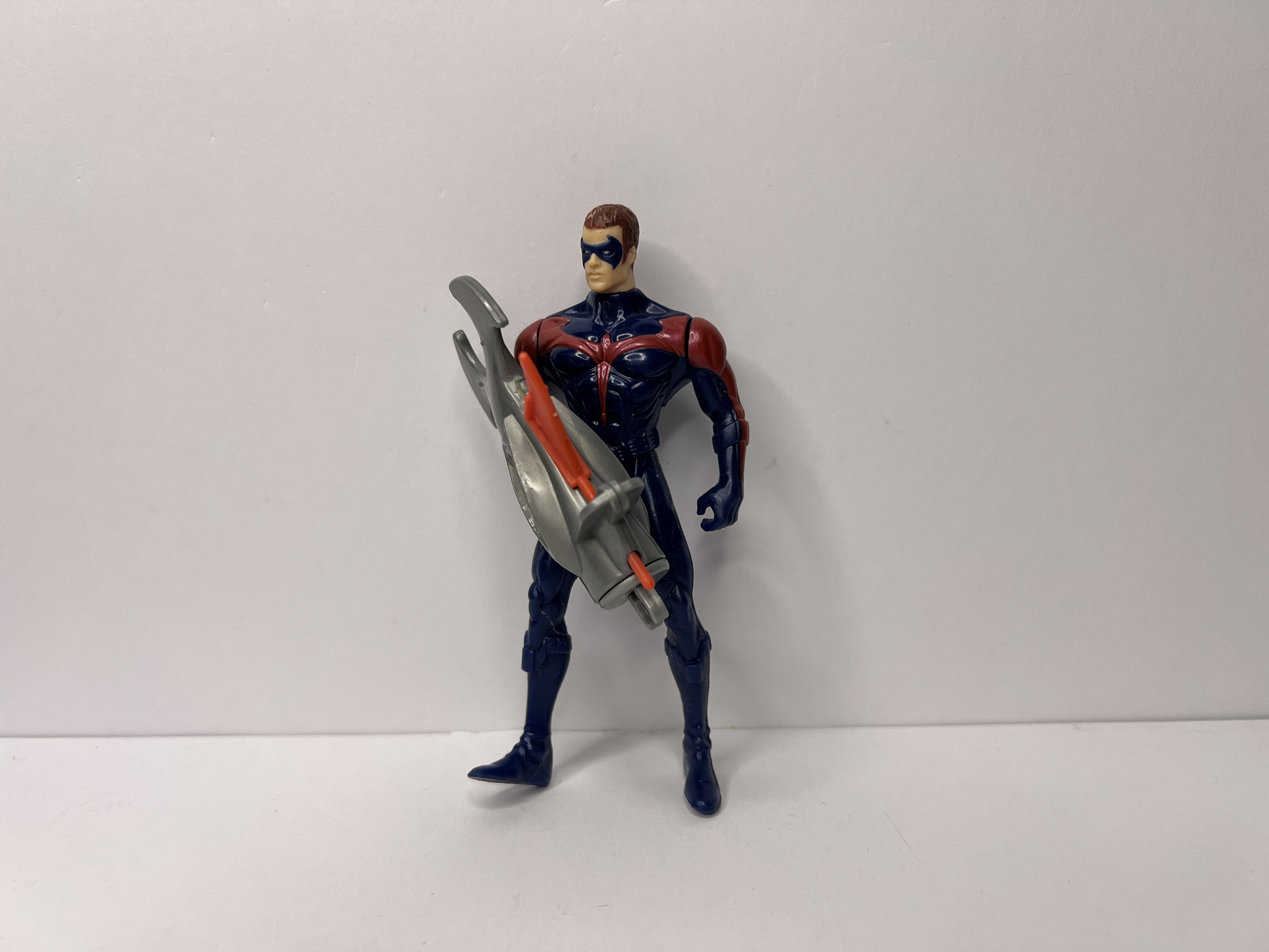 This action figure is Spider-Man 2099, the futuristic web-slinger from Marvel’s alternate timeline, equipped with a high-tech glider accessory for crime-fighting in style. Wearing his signature blue-and-red suit with the skull-like spider emblem, Miguel O’Hara swings into action against villains of the year 2099. Perfect for collectors and fans who want their Spidey with a side of sci-fi swagger.