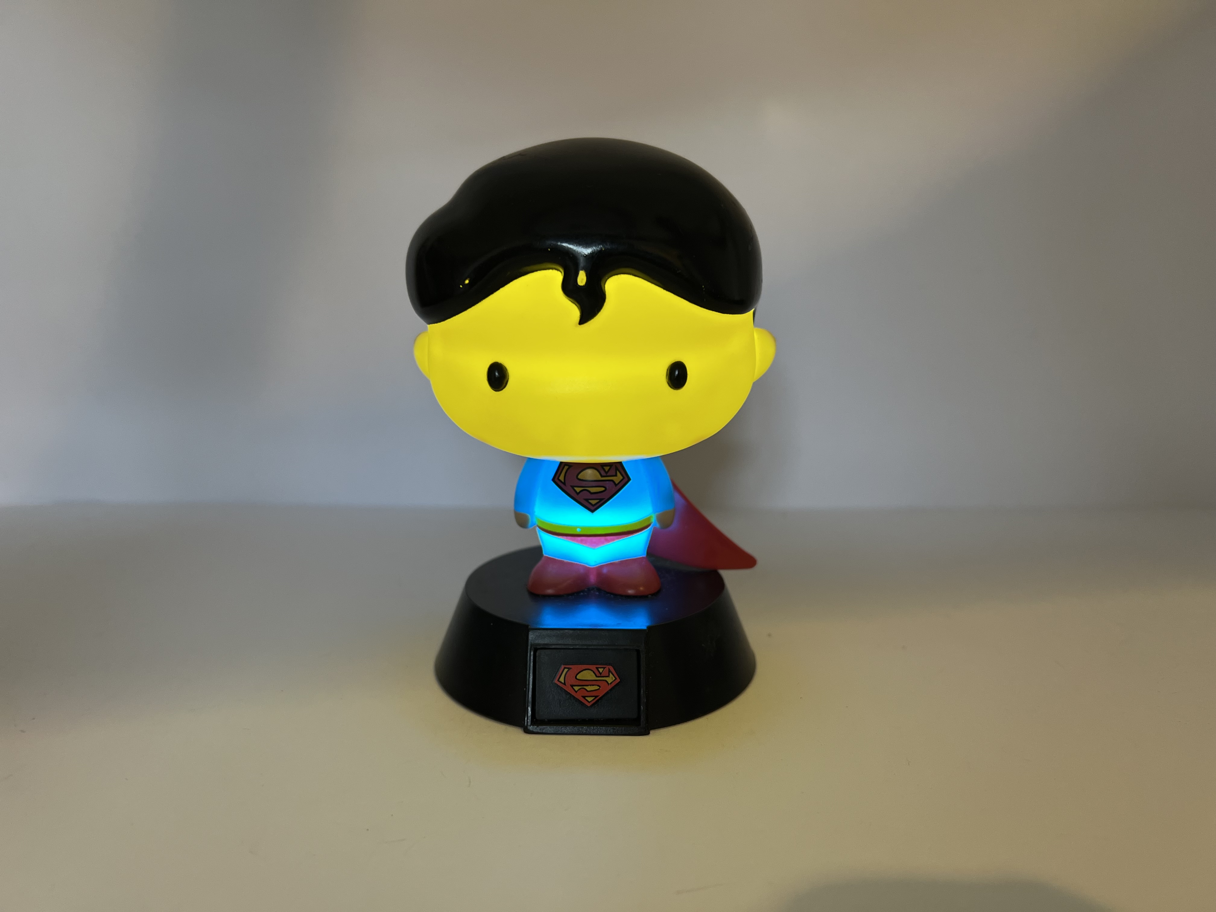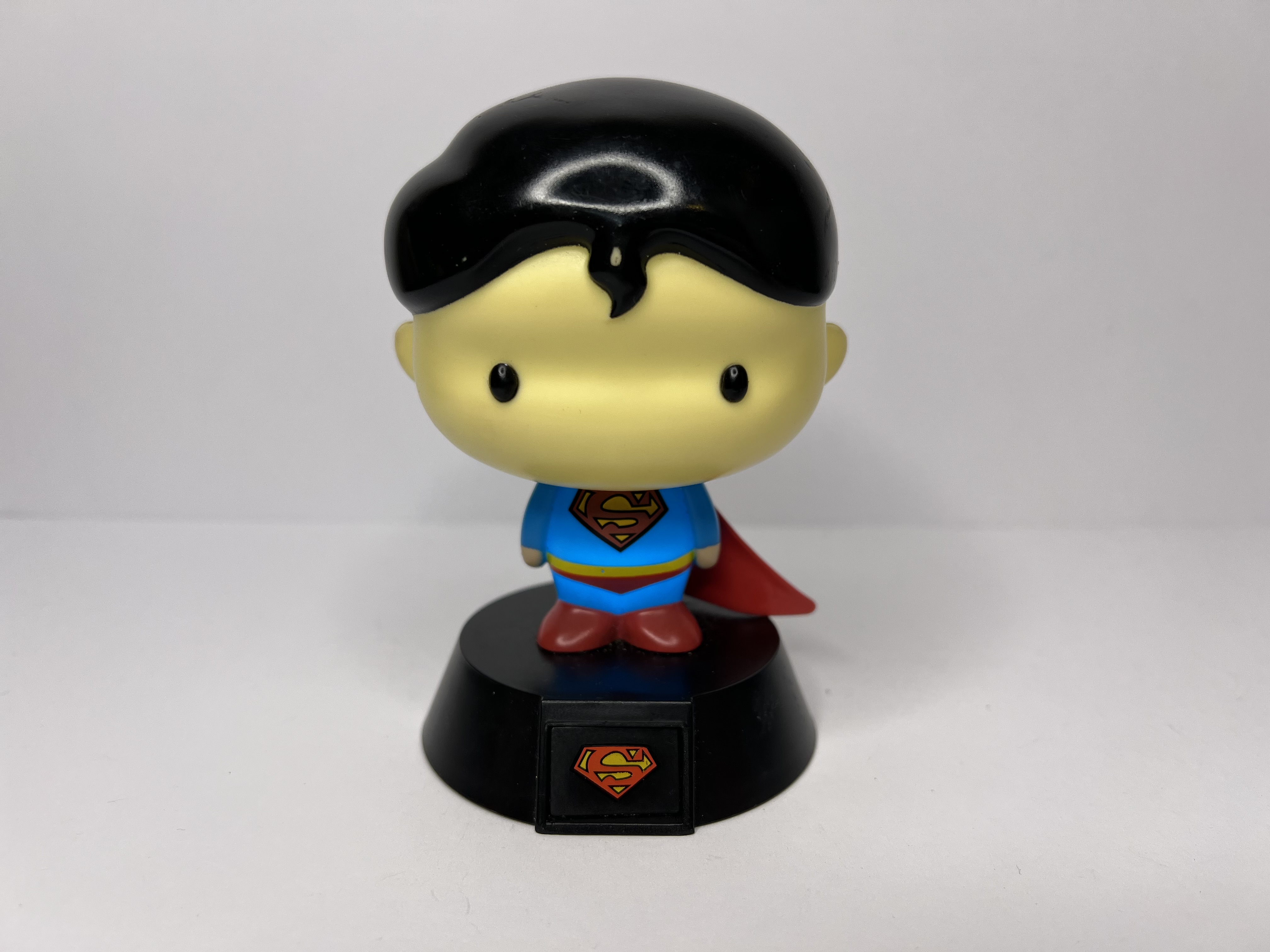 Brighten up your Fortress of Solitude (or just your nightstand) with this Superman Icon Light! Featuring the adorable chibi-style Man of Steel, complete with cape, “S” emblem, and heroic hair curl, this little hero lights up to chase away the darkness faster than a speeding bullet.