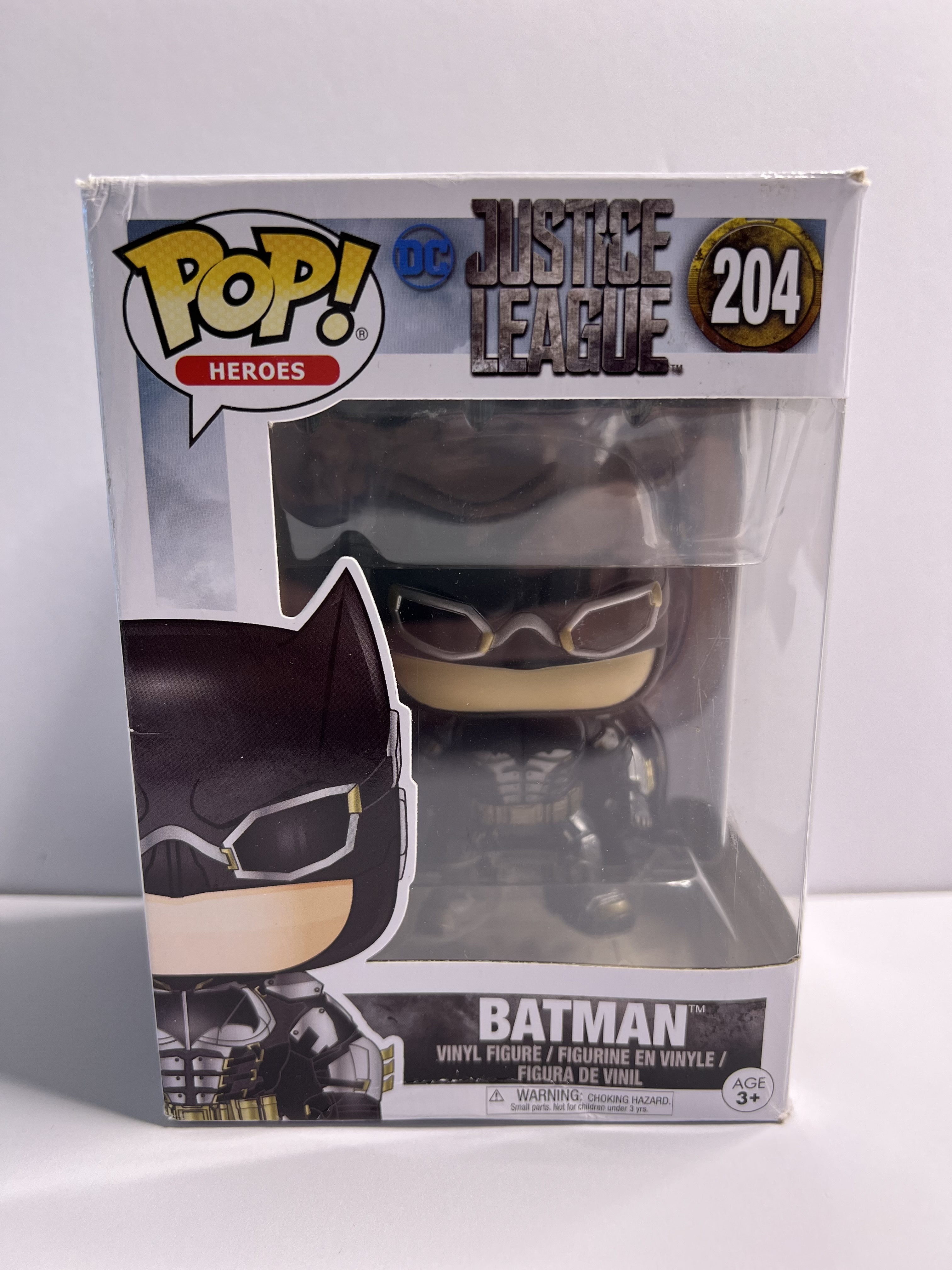 This isn’t your average cape-and-cowl moment. Pop! #204 from the Justice League line features Batman suited up in full tactical armor — because sometimes saving the world needs goggles, plating, and a no-nonsense stare.