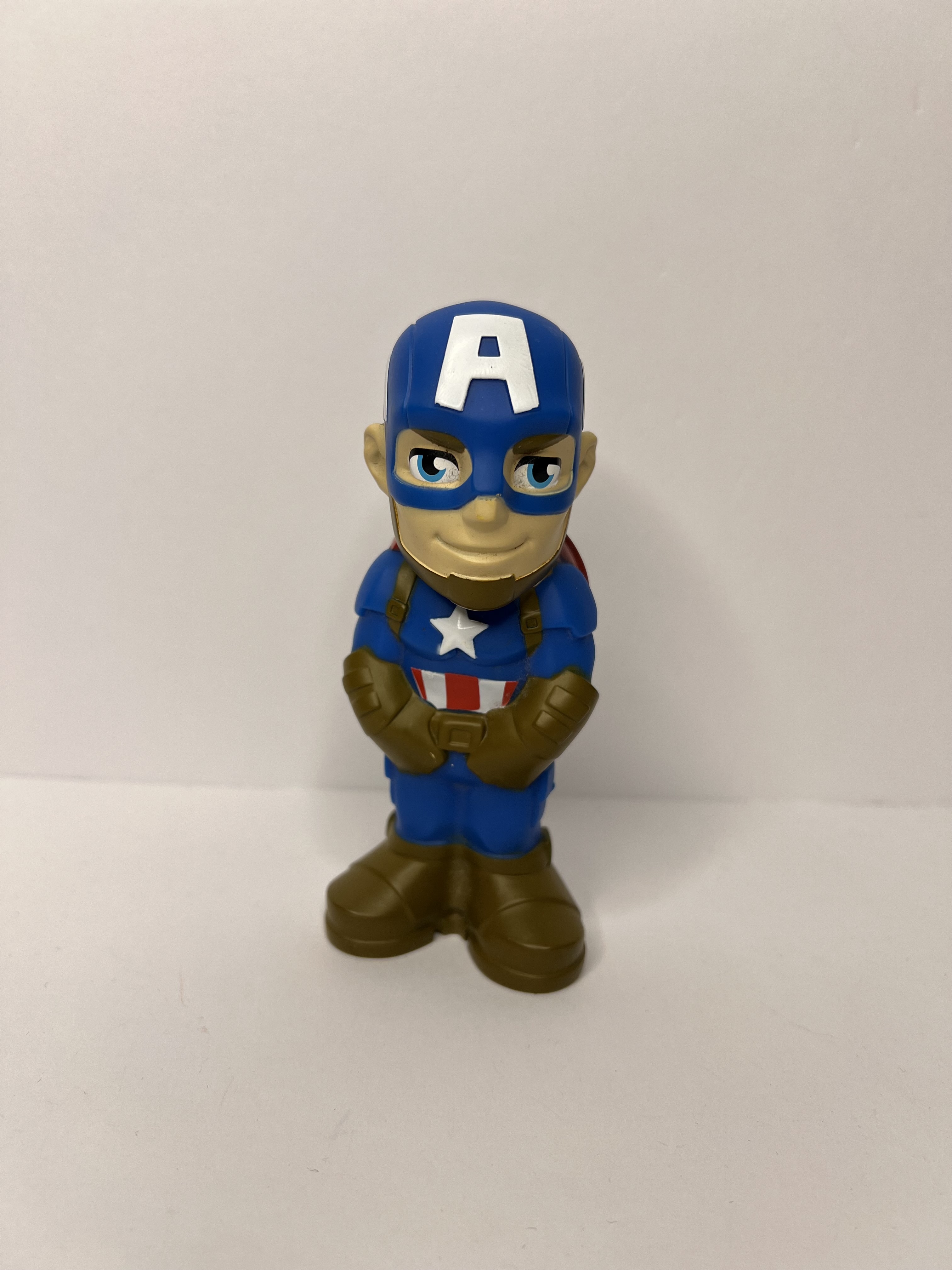 Reporting for duty with a shield full of justice and eyes full of determination, this chibi-style Captain America figure is small in size but big on star-spangled spirit! With his classic blue suit, iconic “A” helmet, and confident stance, this tiny Avenger is ready to fight tyranny and charm shelves everywhere. Whether you're assembling a mighty collection or just need a pocket-sized patriot, Cap’s got your back—no super serum required.