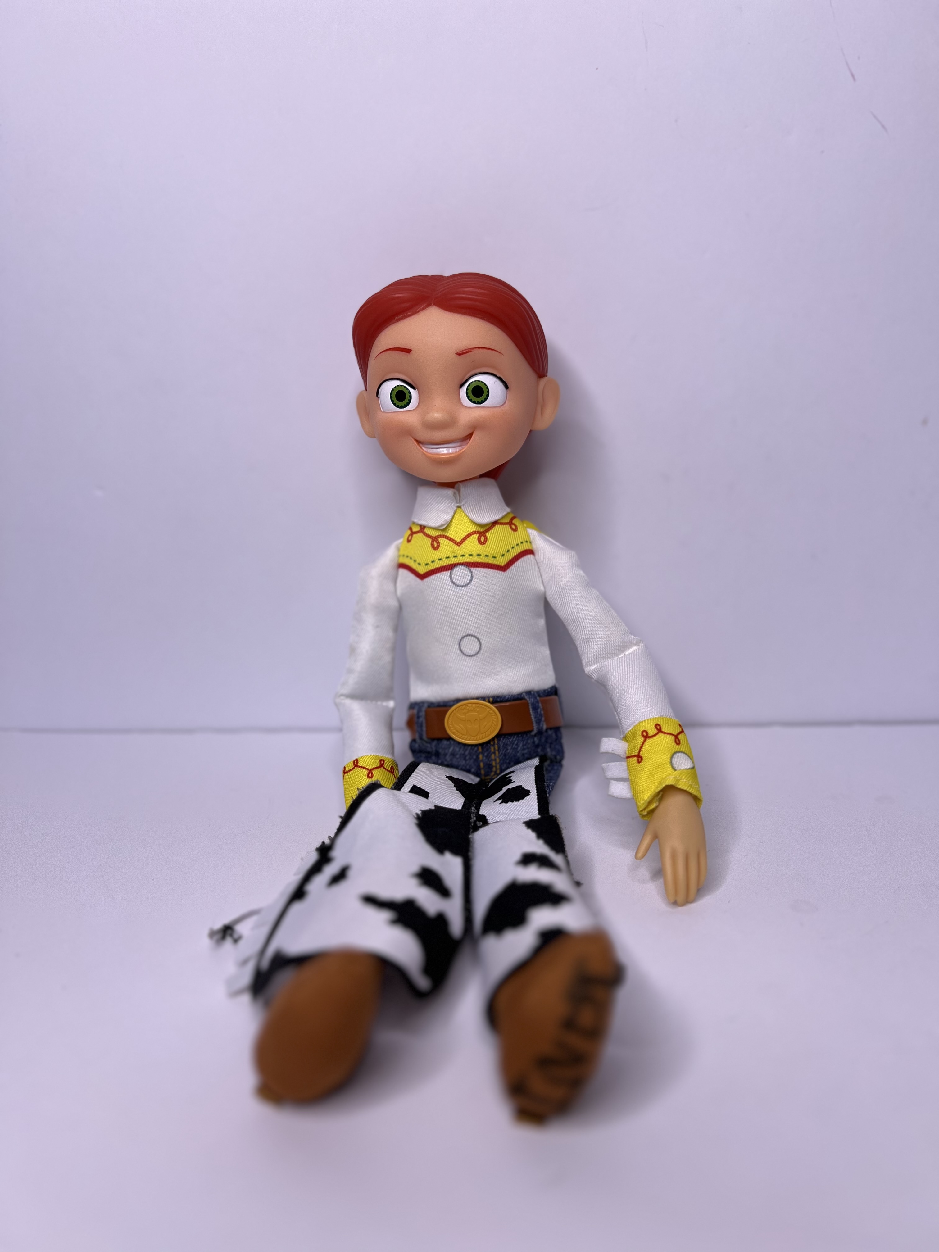 Yee-haw! Meet Jessie the Yodeling Cowgirl, Woody’s spirited partner from Toy Story. With her fiery red hair, bright green eyes, and iconic cow-print chaps, Jessie brings the wild west straight to your collection. She’s fearless, full of heart, and always ready for adventure—whether it’s roping cattle, leading toys to safety, or yodeling her way into your nostalgia. A must-have for any Toy Story fan who wants to lasso some magic from Pixar’s timeless classic.