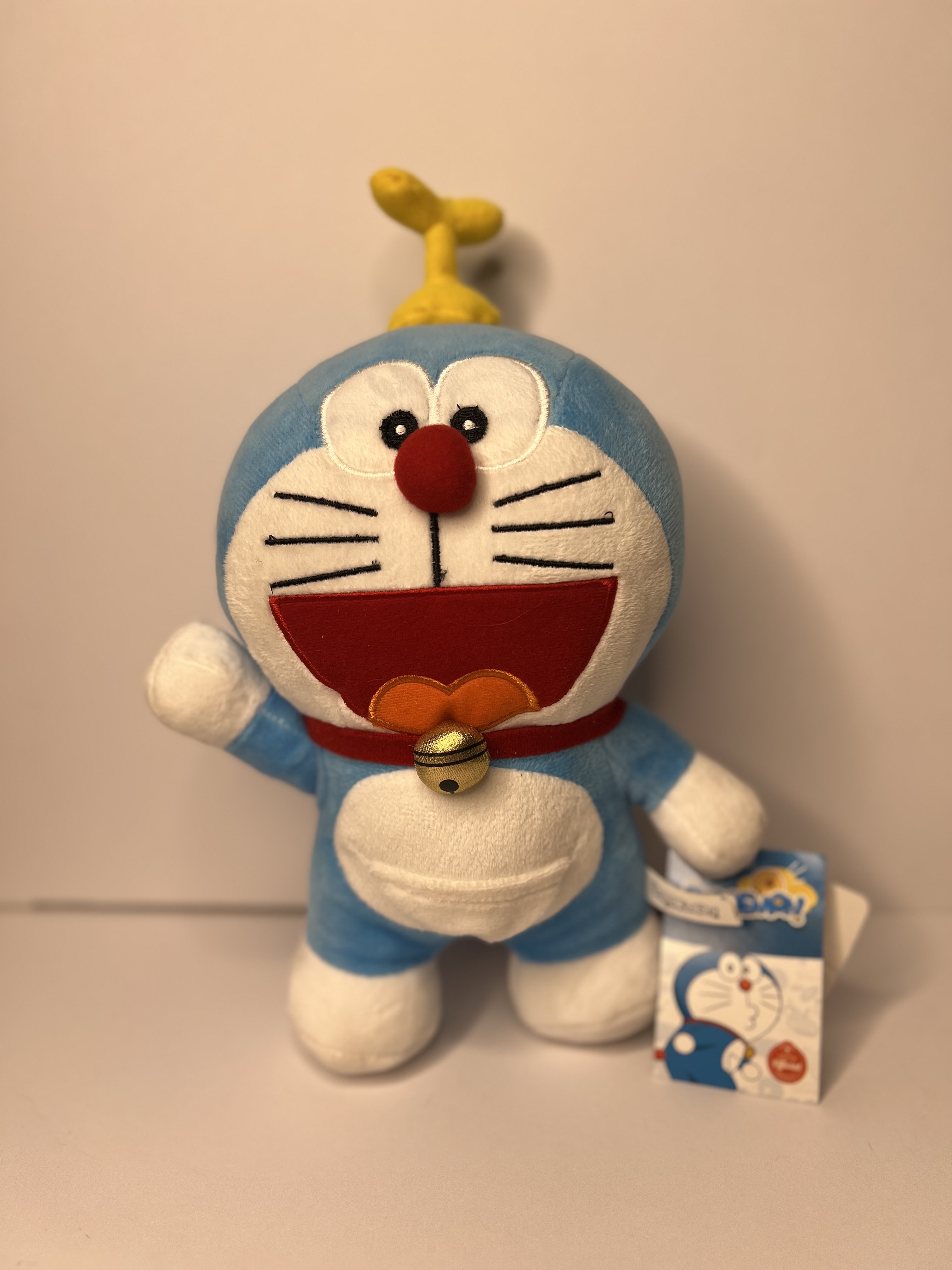 Time-traveling cuteness has arrived! This Doraemon plush brings the beloved robotic cat from the future straight into your arms — complete with his sky-blue body, signature red nose, bell collar, and a bright yellow take-copter propeller on top. Whether you're solving problems from the 22nd century or just need a cozy companion with infinite pocket-space (and infinite charm), Doraemon’s got your back.