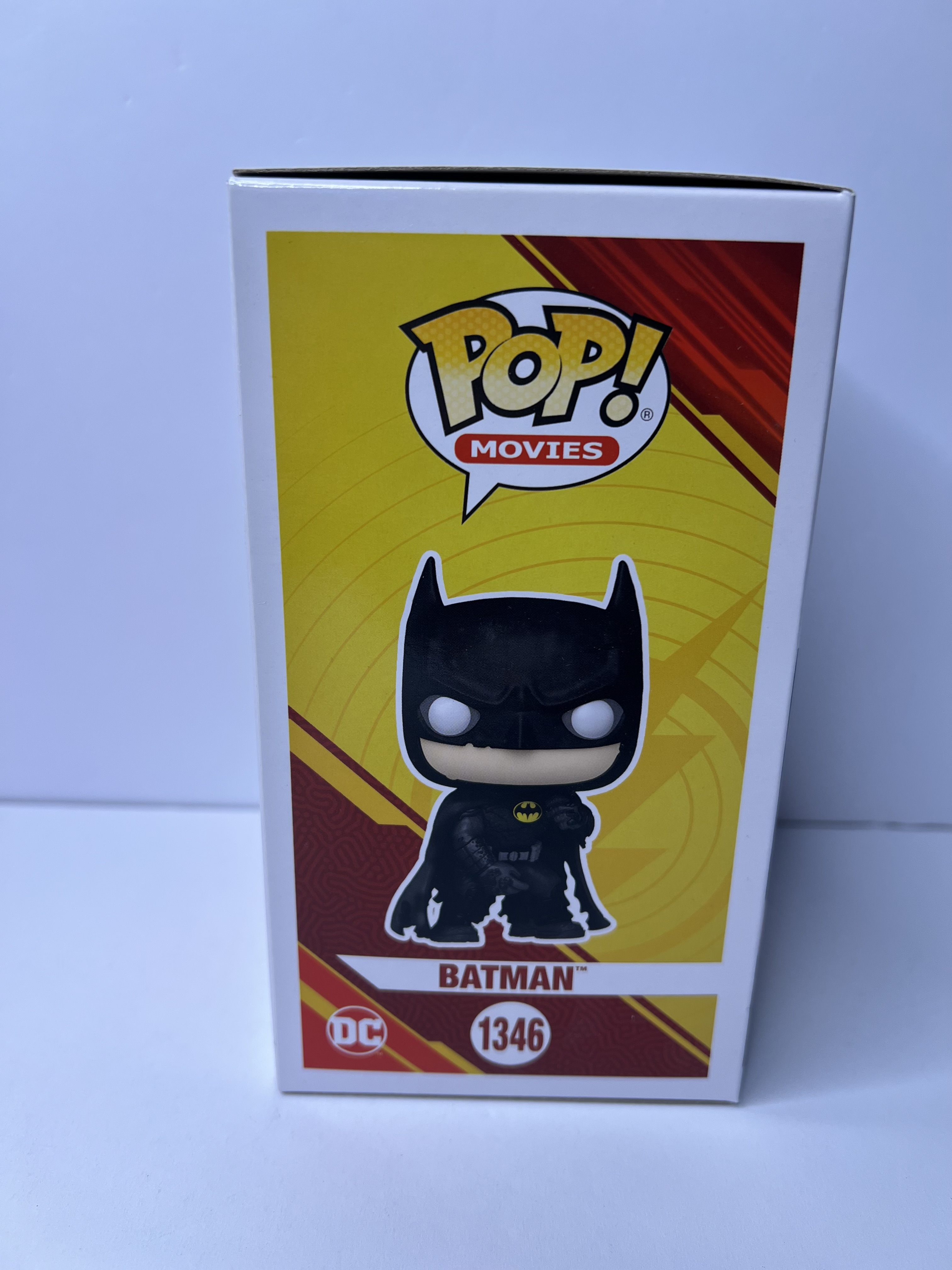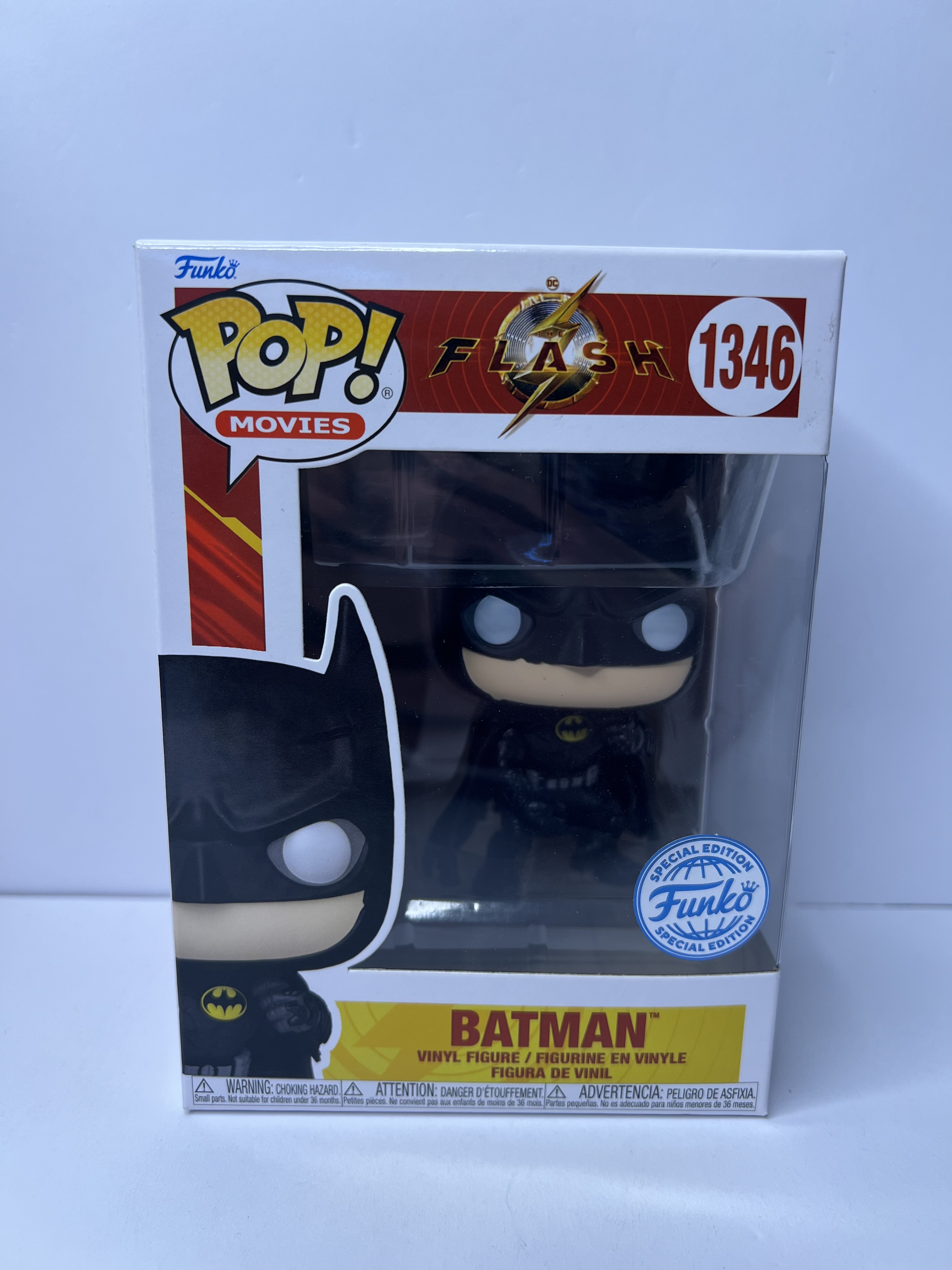 The Dark Knight returns in lightning-fast fashion! Batman #1346 from The Flash movie brings the classic 1989 suit back in Special Edition glory. Featuring the iconic yellow bat emblem and a brooding stance, this Pop! is a tribute to the Batmen of multiverses past. Packaged in a crisp box with only minimal shelf wear, it’s a nostalgic blend of Keaton cool and speedster chaos.