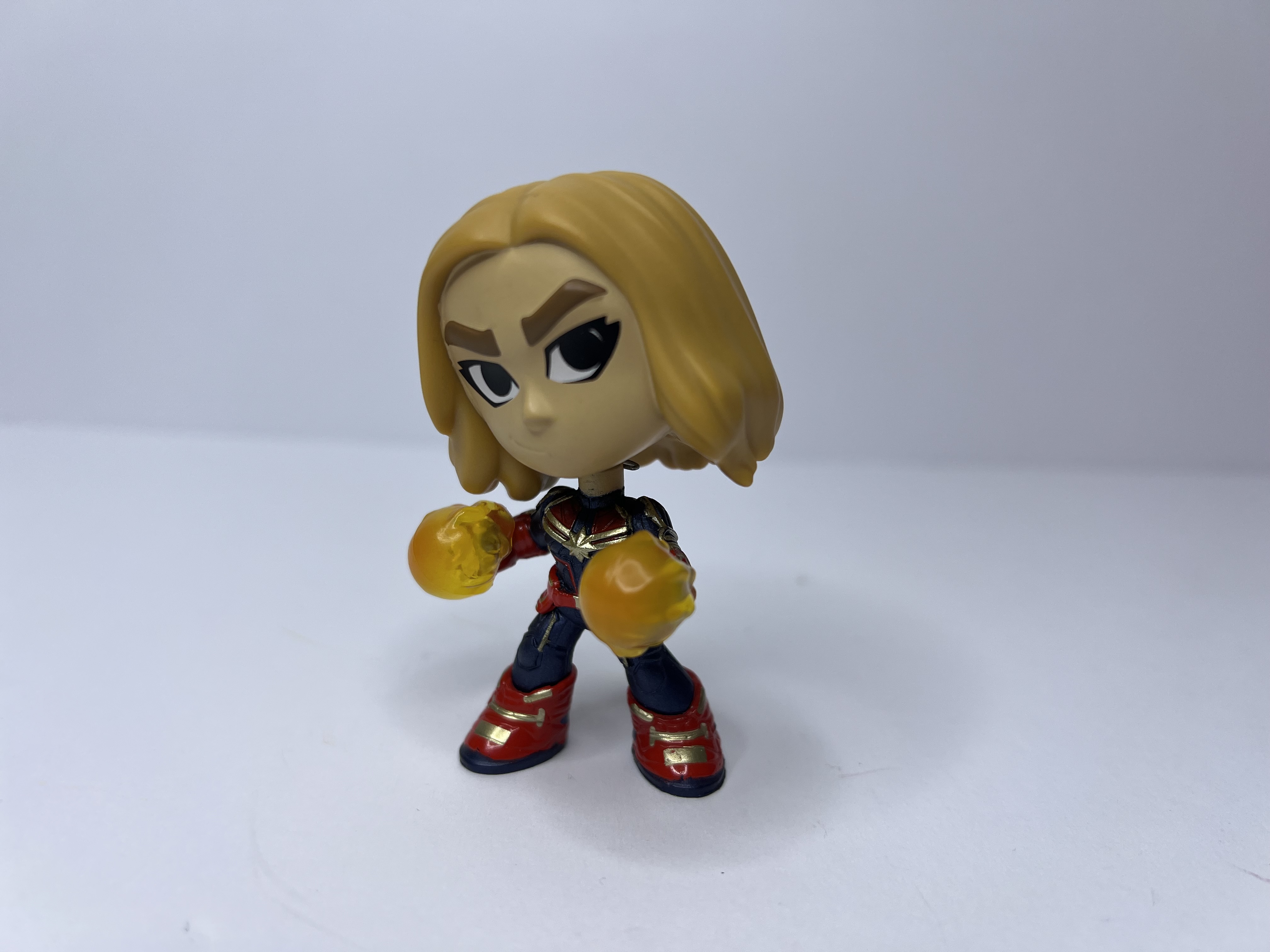 Small in size but massive in cosmic power, this mini Captain Marvel is ready to blast through villains and bad hair days alike! Rocking her iconic red, blue, and gold suit with photon fists ablaze, she’s the fearless pilot-turned-superhero who can take on Thanos before breakfast. With her fierce brows and power stance, she’s a pocket-sized powerhouse perfect for defending your shelf or desk from intergalactic threats.