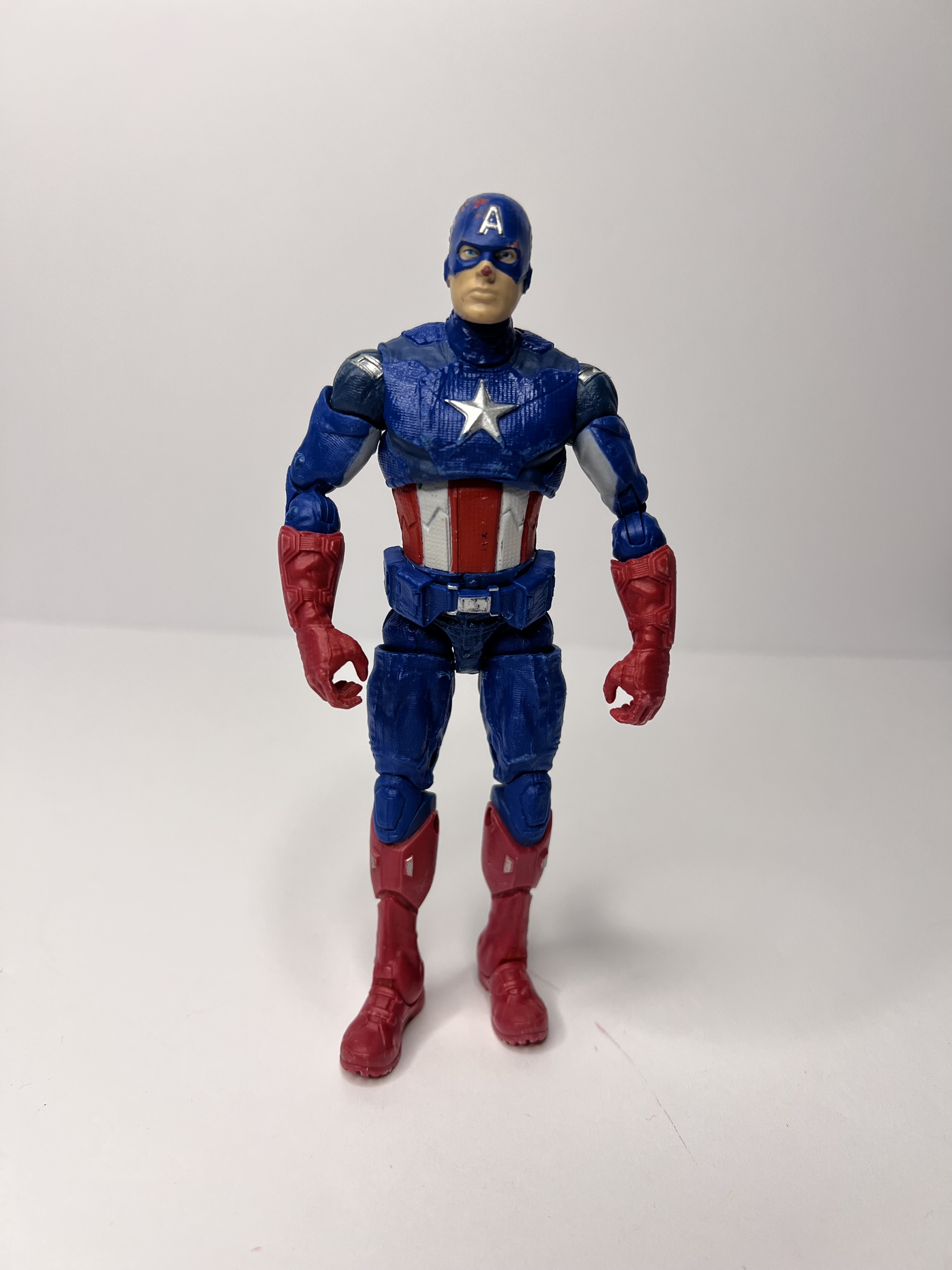 Straight from the pages of Marvel’s golden age, this comic-style Captain America figure brings vintage heroism to life! Dressed in a bold red, white, and blue uniform with that iconic star front and center, Cap is battle-ready with vibrant red gloves and boots, sculpted to reflect his classic comic roots. With his “A” helmet and timeless stance, this figure is a salute to the Super Soldier who started it all!