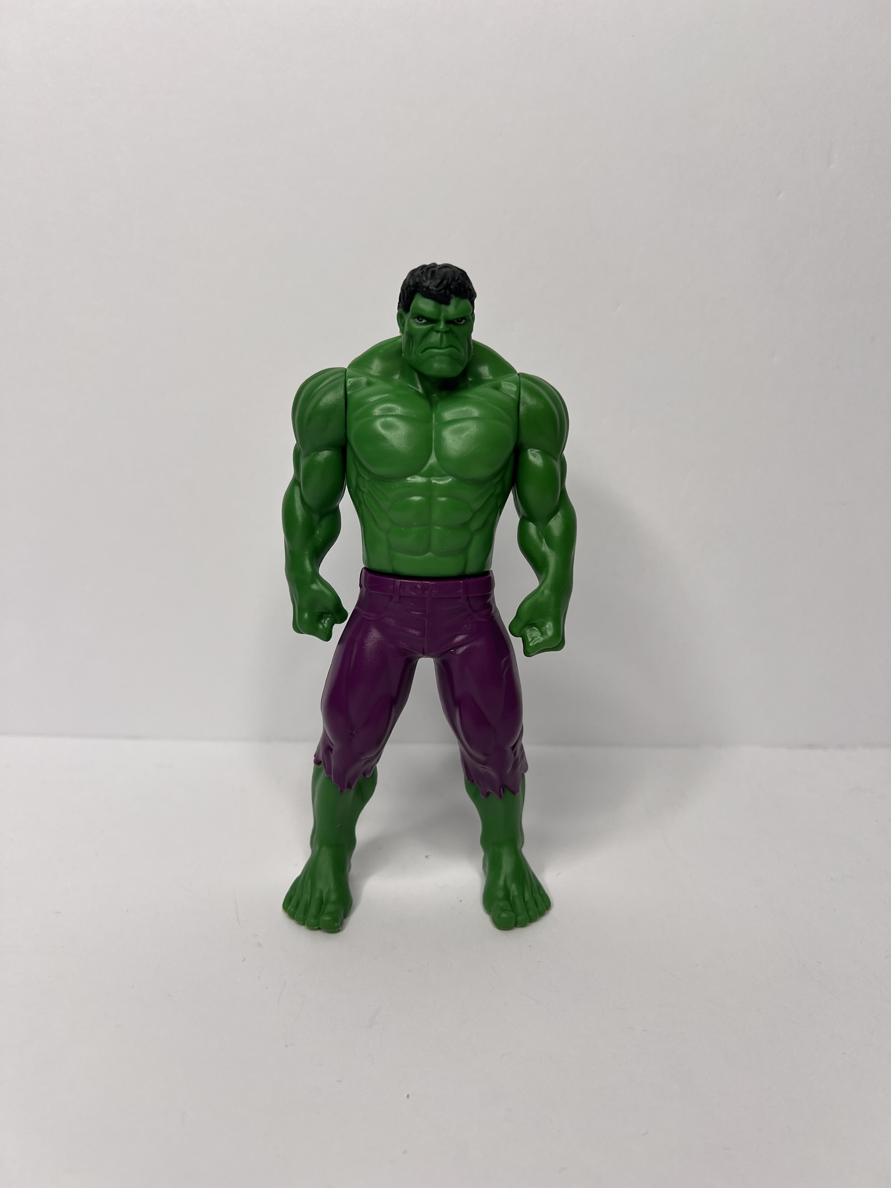 Meet the classic Hulk, green, mean, and not here for your nonsense. Rocking the iconic purple pants (which have miraculously survived yet another rage burst), this figure brings back that vintage comic book style—bulky chest, clenched fists, and a face that says “don’t test me.” Whether he’s smashing injustice or just silently judging your snack choices, this Hulk is ready to deliver full-strength attitude and nostalgia in one powerful pose.