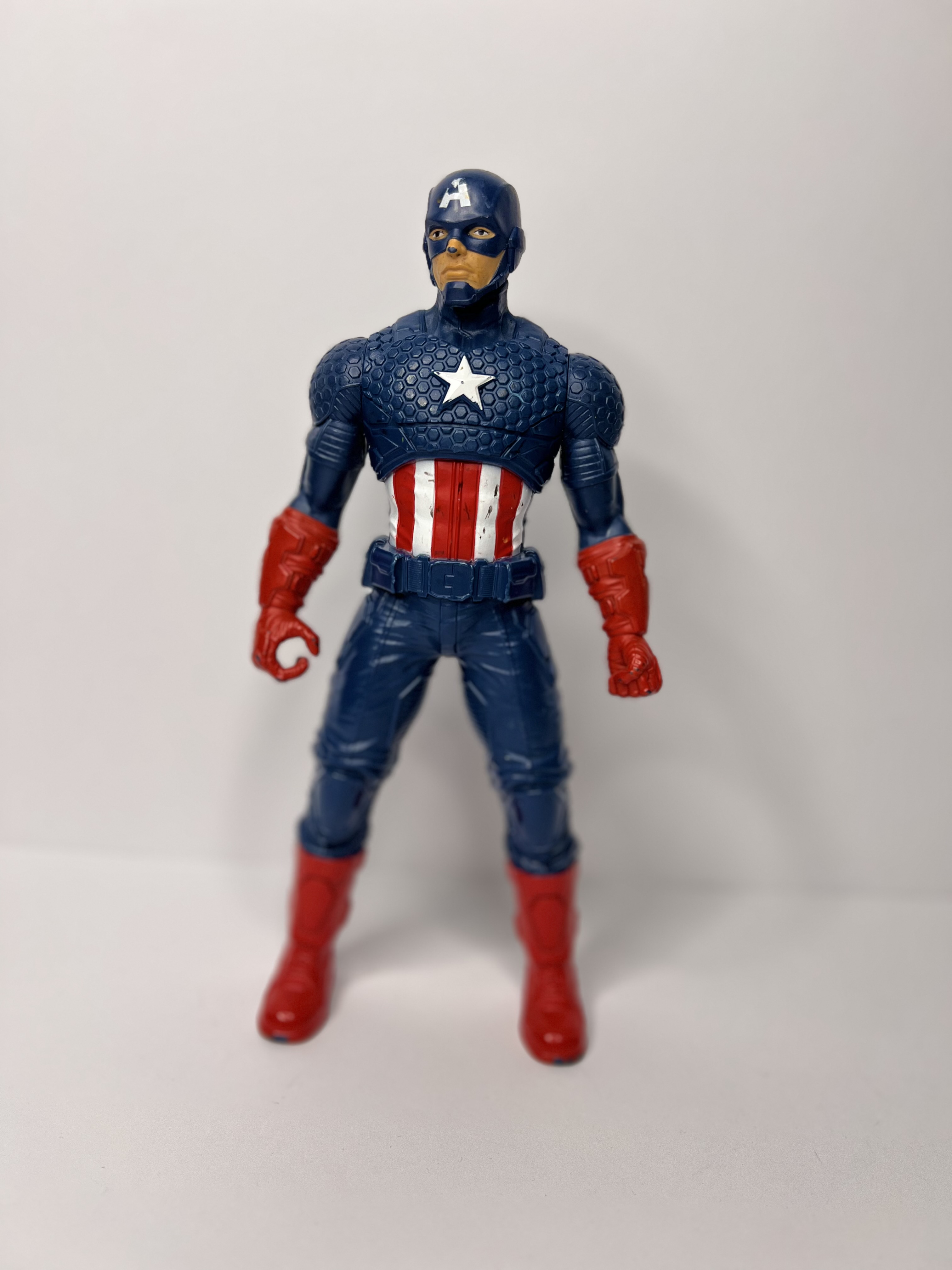 Straight from the pages of Marvel’s golden age, this comic-style Captain America figure brings vintage heroism to life! Dressed in a bold red, white, and blue uniform with that iconic star front and center, Cap is battle-ready with vibrant red gloves and boots, sculpted to reflect his classic comic roots. With his “A” helmet and timeless stance, this figure is a salute to the Super Soldier who started it all!