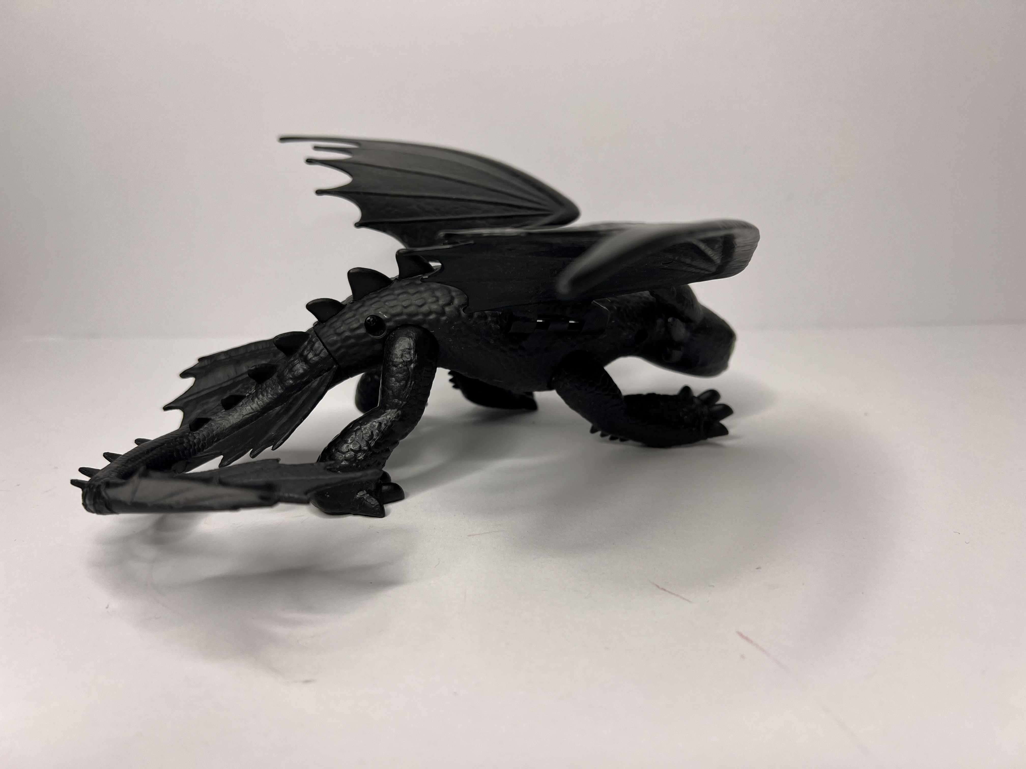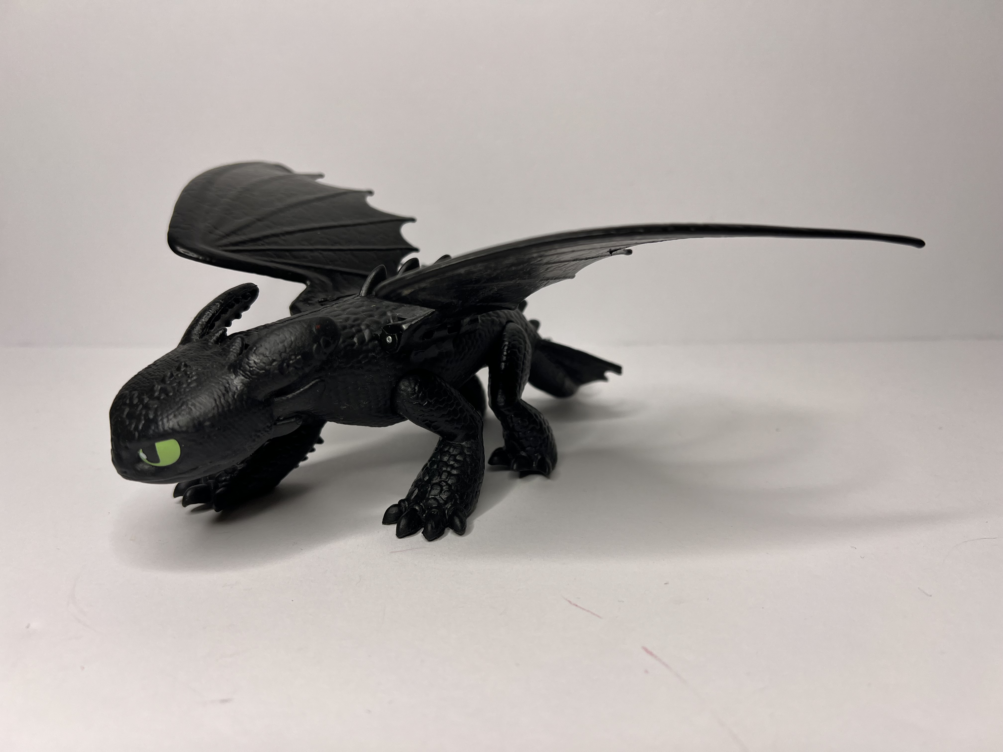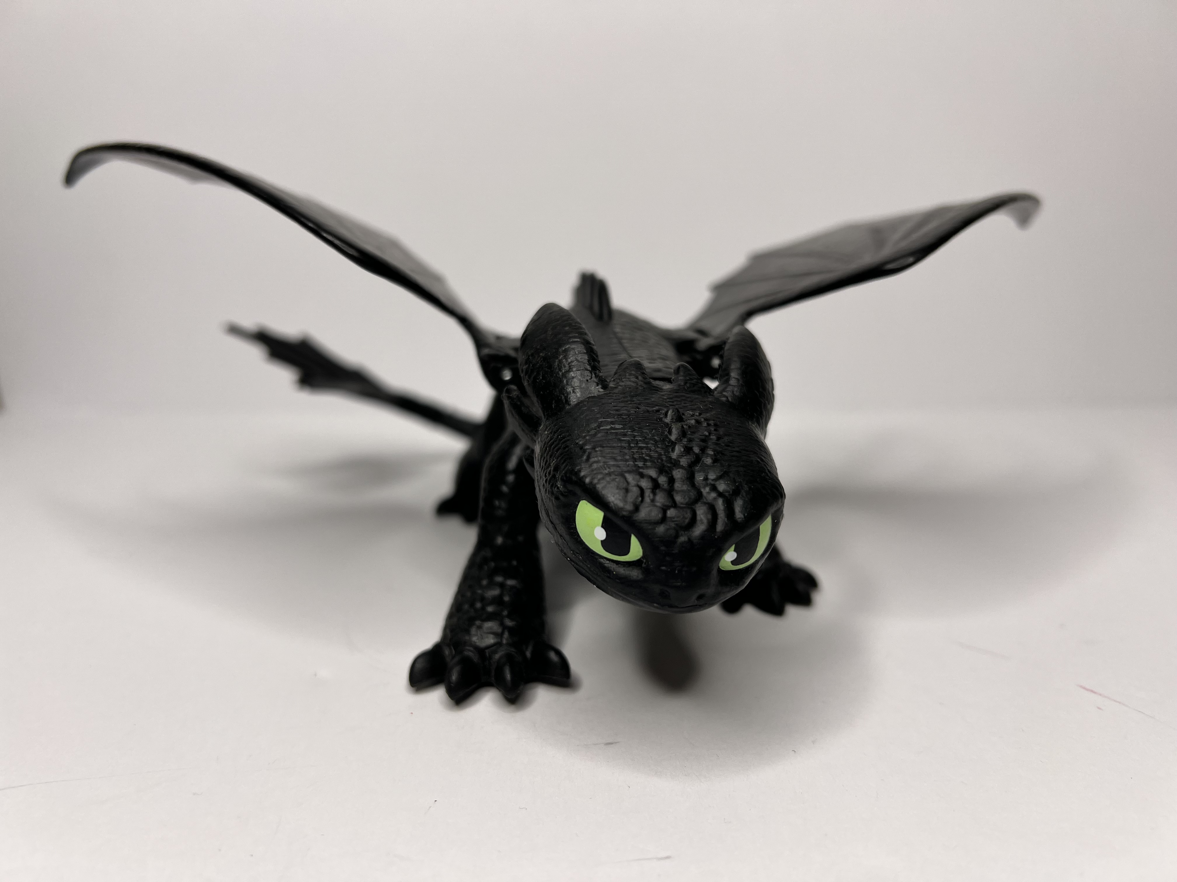 Soar into adventure with Toothless, the Night Fury dragon from How to Train Your Dragon! With sleek black scales, piercing green eyes, and wide, poseable wings, this figure captures the stealth and charm of Hiccup’s loyal companion. Perfect for reenacting epic sky battles or displaying as part of your dragon collection.
