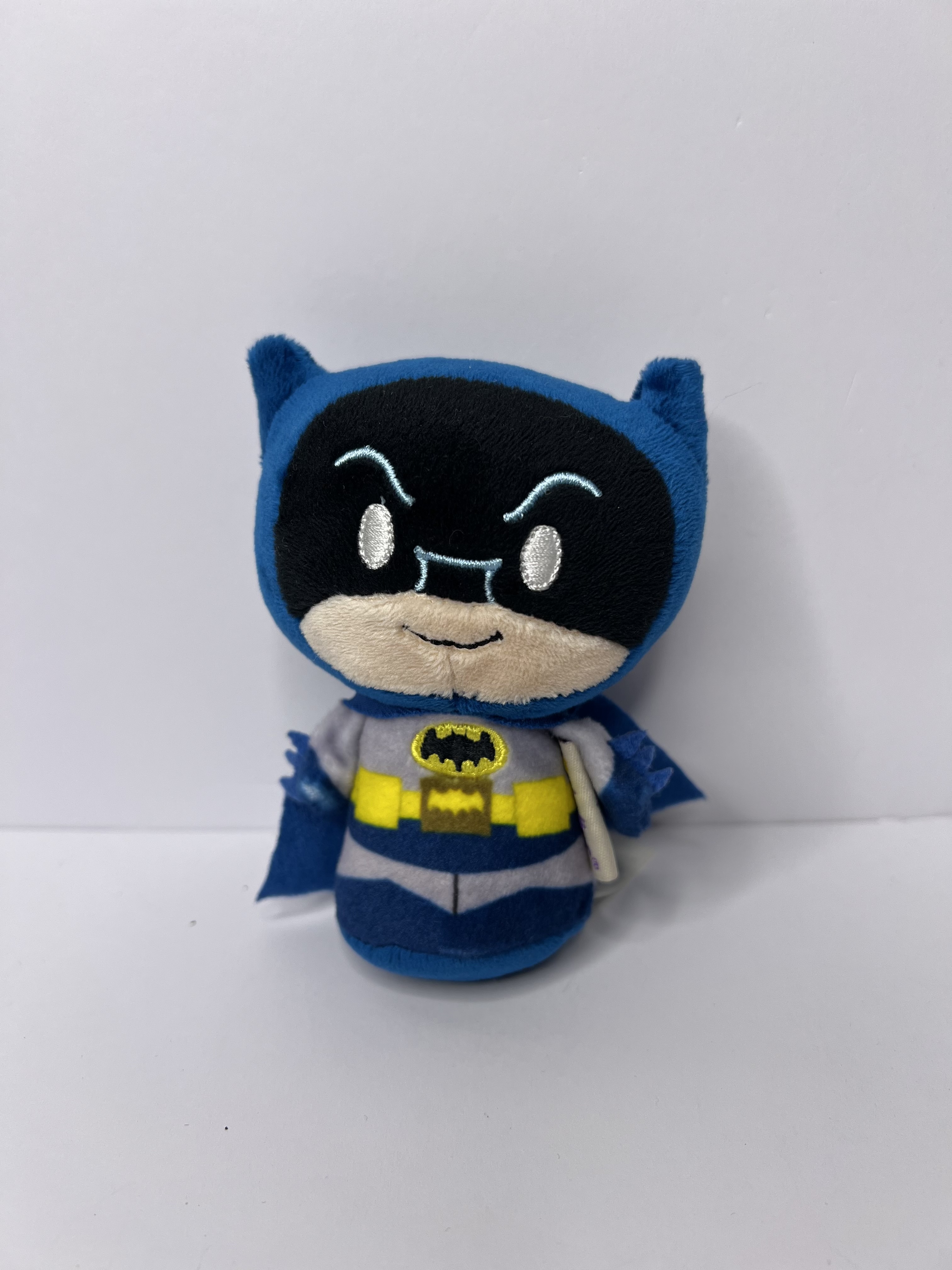 🦇 Holy plush perfection, Batman! This Itty Bittys Batman is rocking the classic blue and grey suit with that iconic yellow utility belt – ready to bring justice to your shelf, one cuddle at a time. With bold embroidered eyes and his serious “I mean business” frown, he’s the Dark Knight in a delightfully squishy disguise.