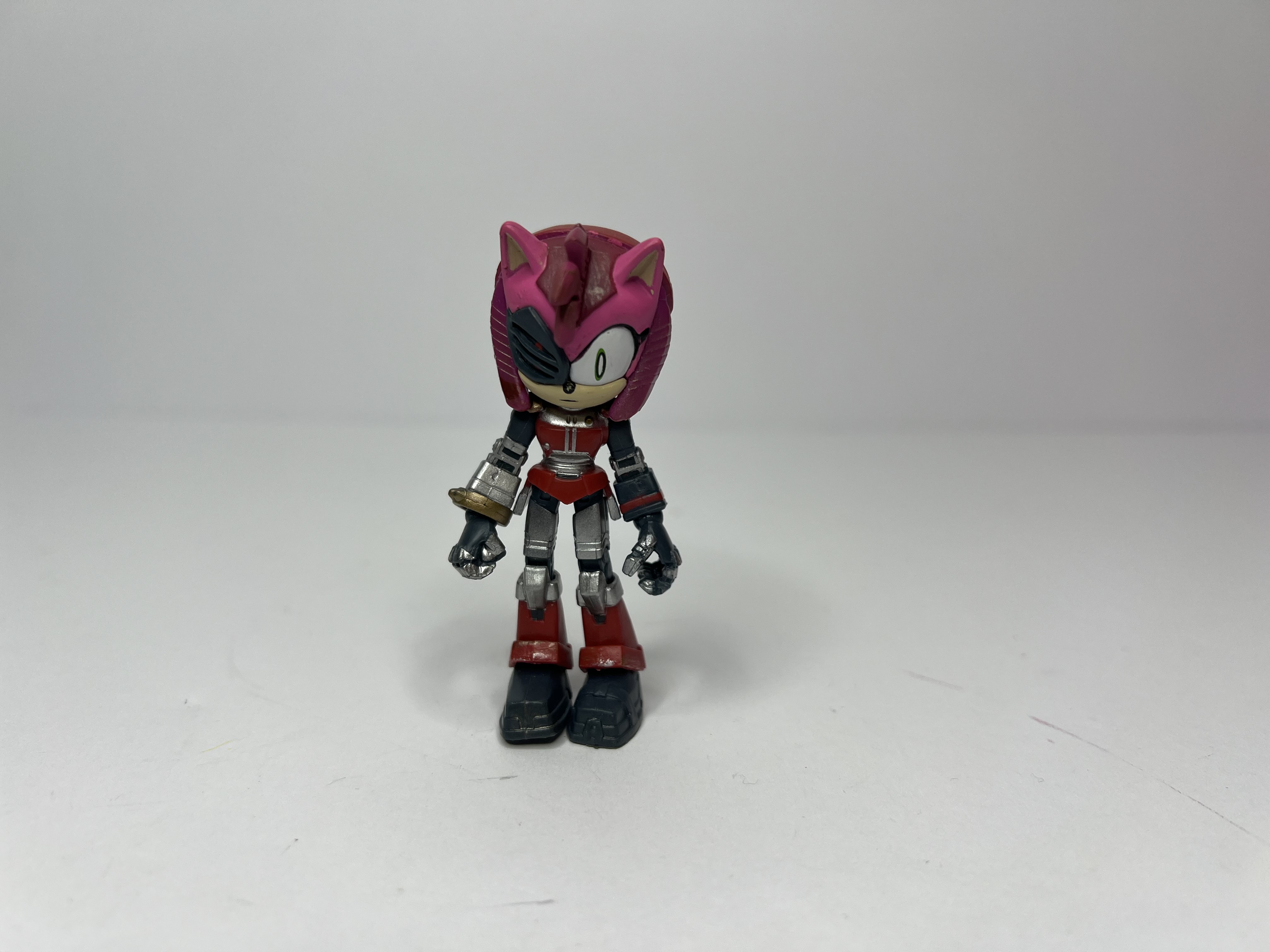 Straight from the Sonic universe, it’s Mecha Amy Rose — the pink powerhouse with a steel-core upgrade! With shiny silver limbs, bold red boots, and that unmistakable rosy helmet, she’s built for turbo-speed and total takedowns. Whether chasing Sonic or smashing badniks, this cyber-charged charmer is ready to bring the boom with style!