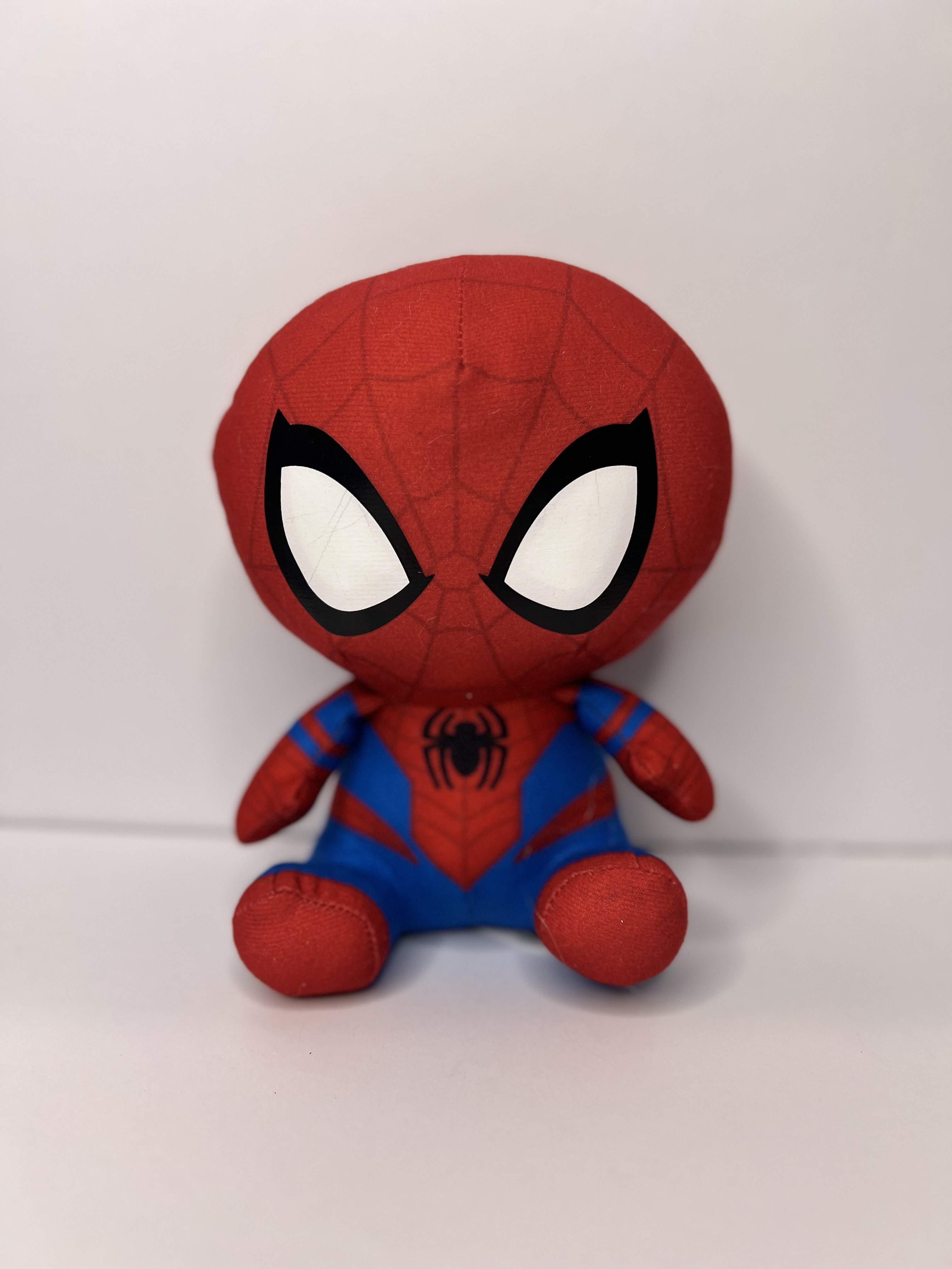 wing into snuggles with your friendly neighborhood Spider-Man! This plush version of Peter Parker features his classic red-and-blue suit with crisp black web detailing, striking white eyes, and a cuddly design that’s ready for hugs, battles, or display. Whether you’re teaming him up with other heroes or just need a soft companion for your shelf, this Spidey is always ready to stick the landing.