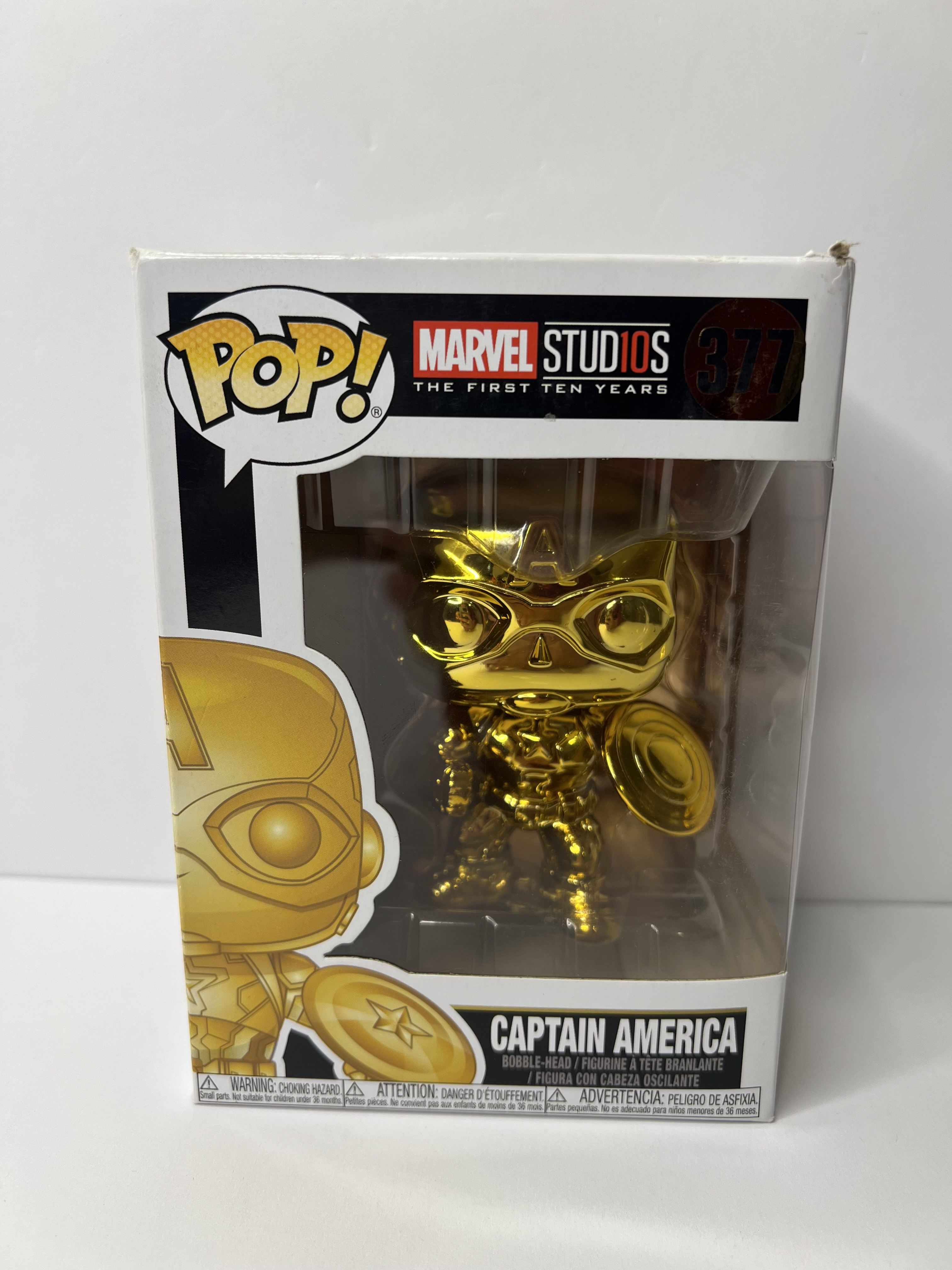 💥 Captain America #377 – Marvel Studios: The First Ten Years (Gold Chrome Pop!)