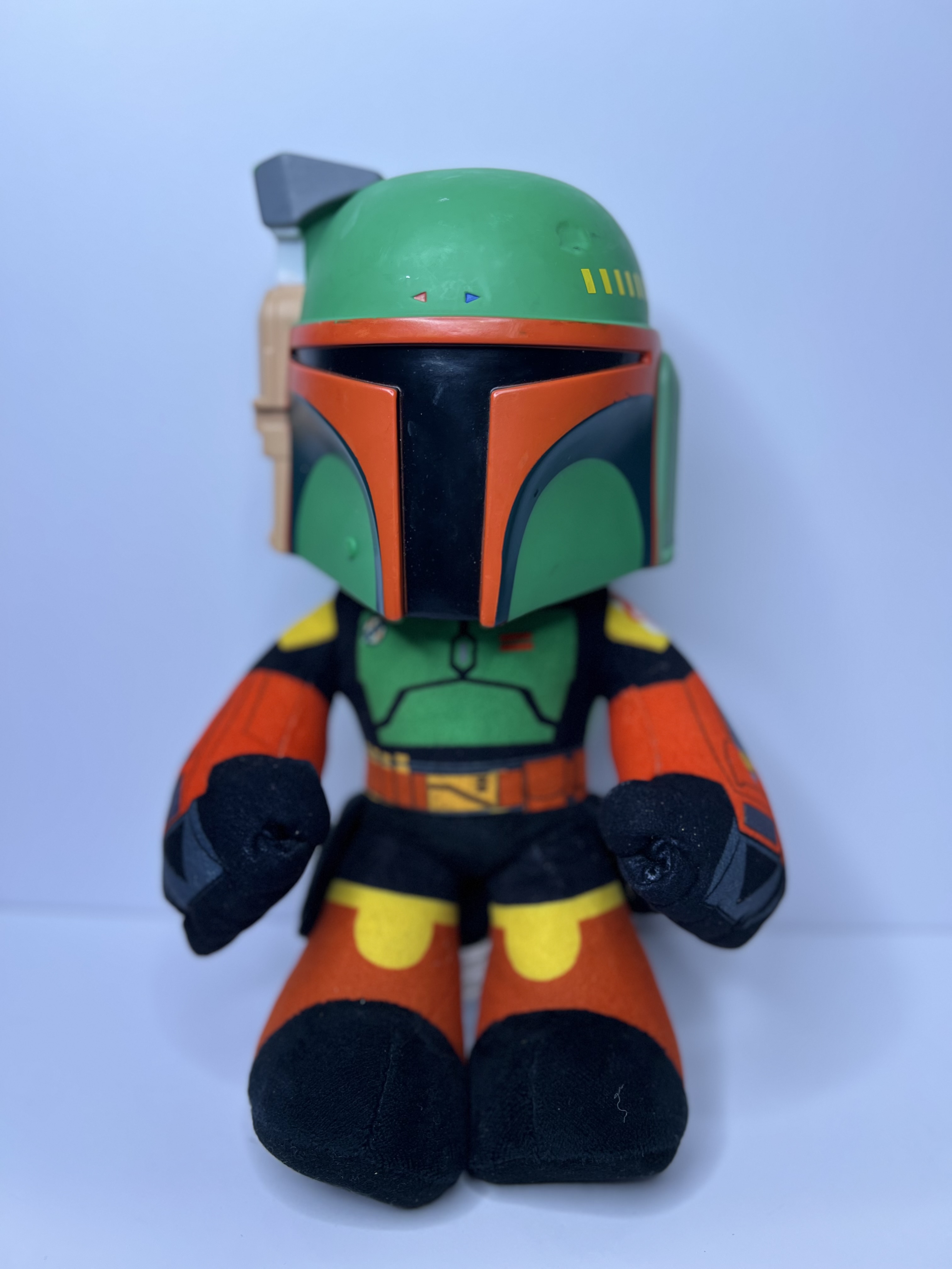 Say hello to this Star Wars Boba Fett plush — the galaxy’s most feared bounty hunter, now in huggable form. He’s rocking a colorful twist on his iconic Mandalorian armor, complete with jetpack detail and that classic T-shaped visor. Fierce, fearless, and fuzzy, this Fett is equal parts warrior and snuggle companion.