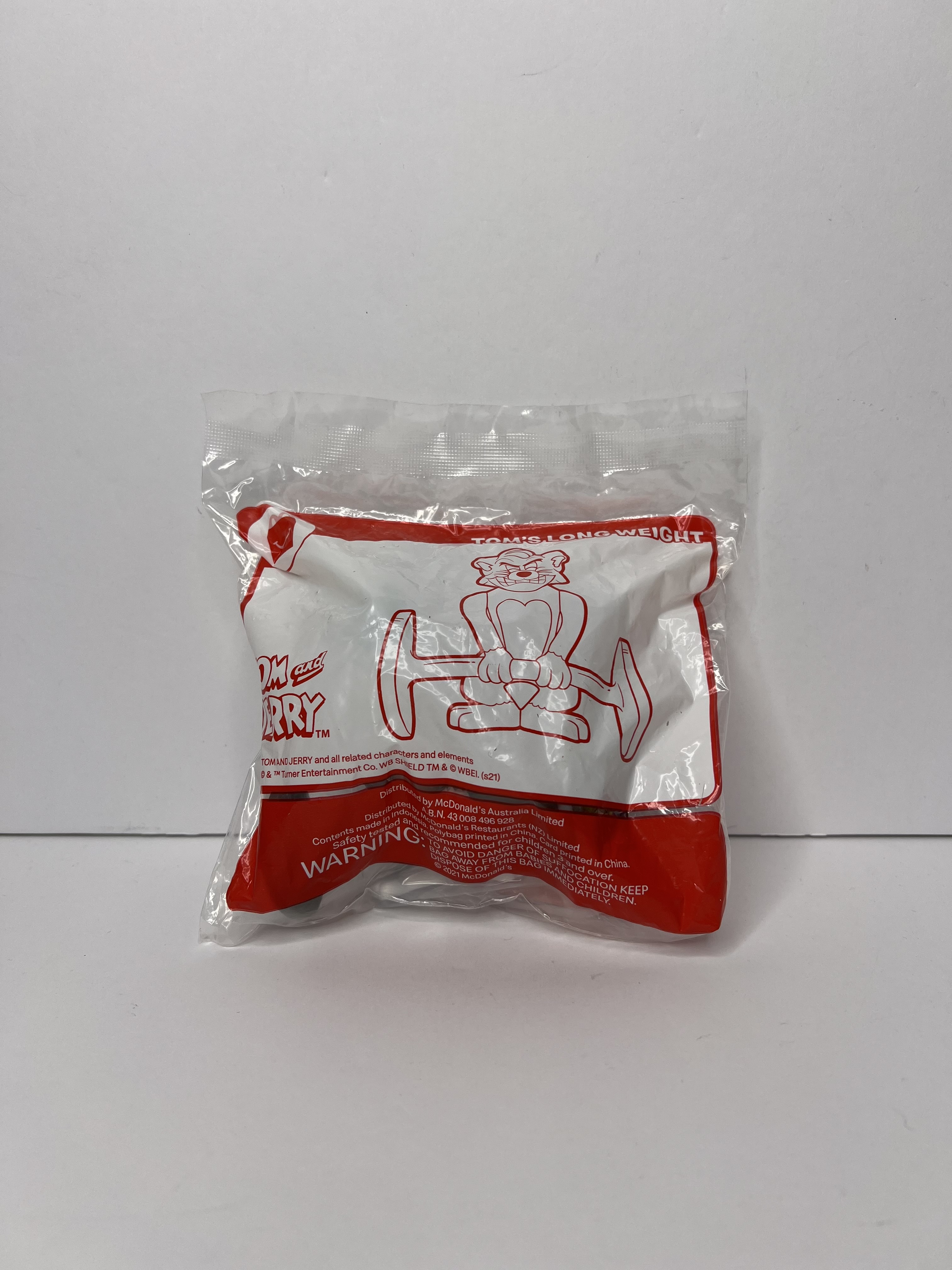 From McDonald’s Australia’s 2021 Happy Meal line, this sealed Tom & Jerry toy features Jerry showing off his muscle by lifting cartoon-sized weights. Still in its original bag, this piece blends modern McDonald’s nostalgia with classic cartoon fun—making it a must-have for toy collectors, Tom & Jerry fans, or anyone who loves a flexing mouse with attitude.