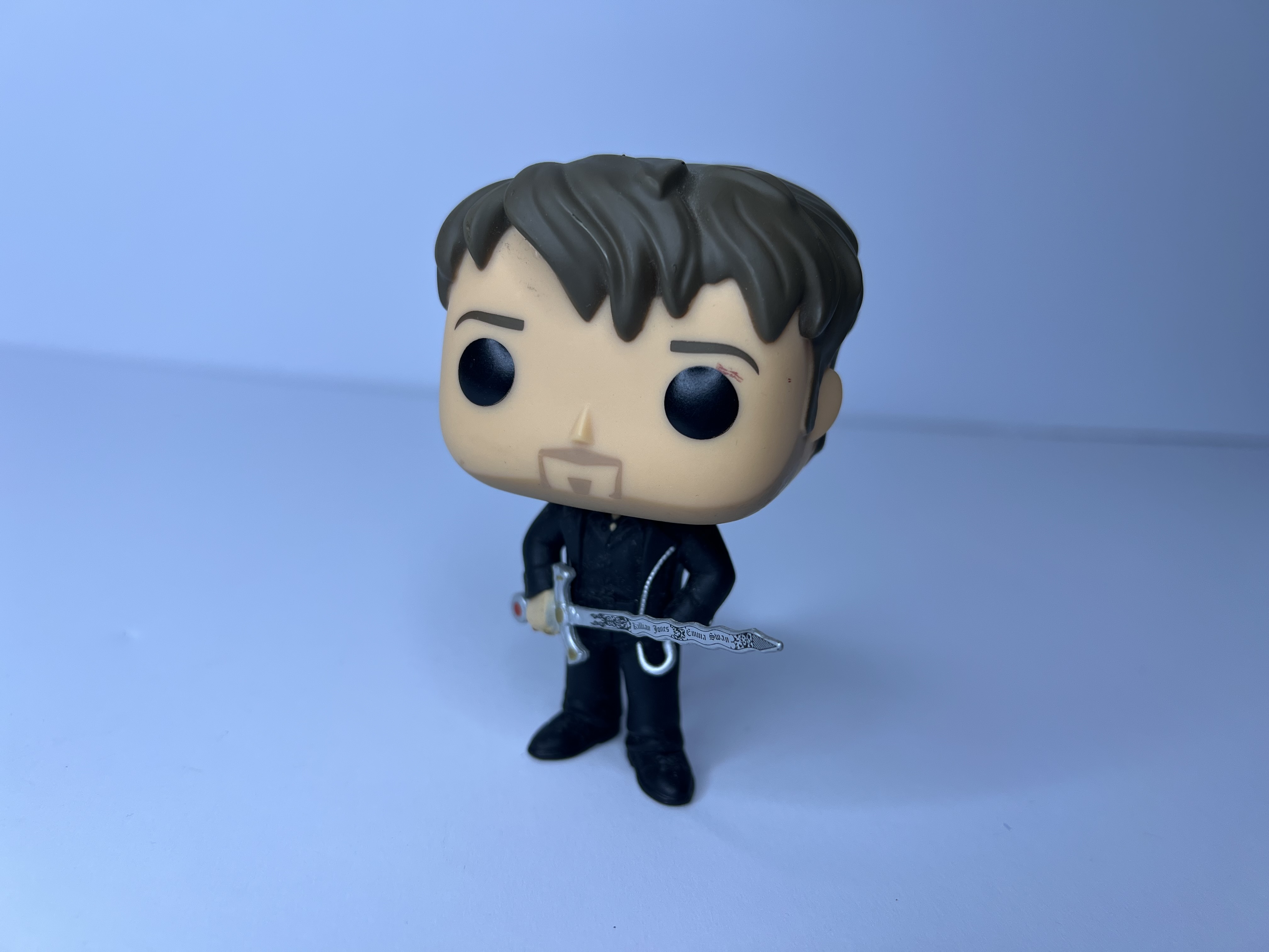 This Hook #385 Pop! is rocking more than guyliner — he’s wielding Excalibur. Dressed in his black leather ensemble with his signature smirk and that cursed blade in hand, this version of Killian Jones brings the perfect mix of danger and charm to your shelf.