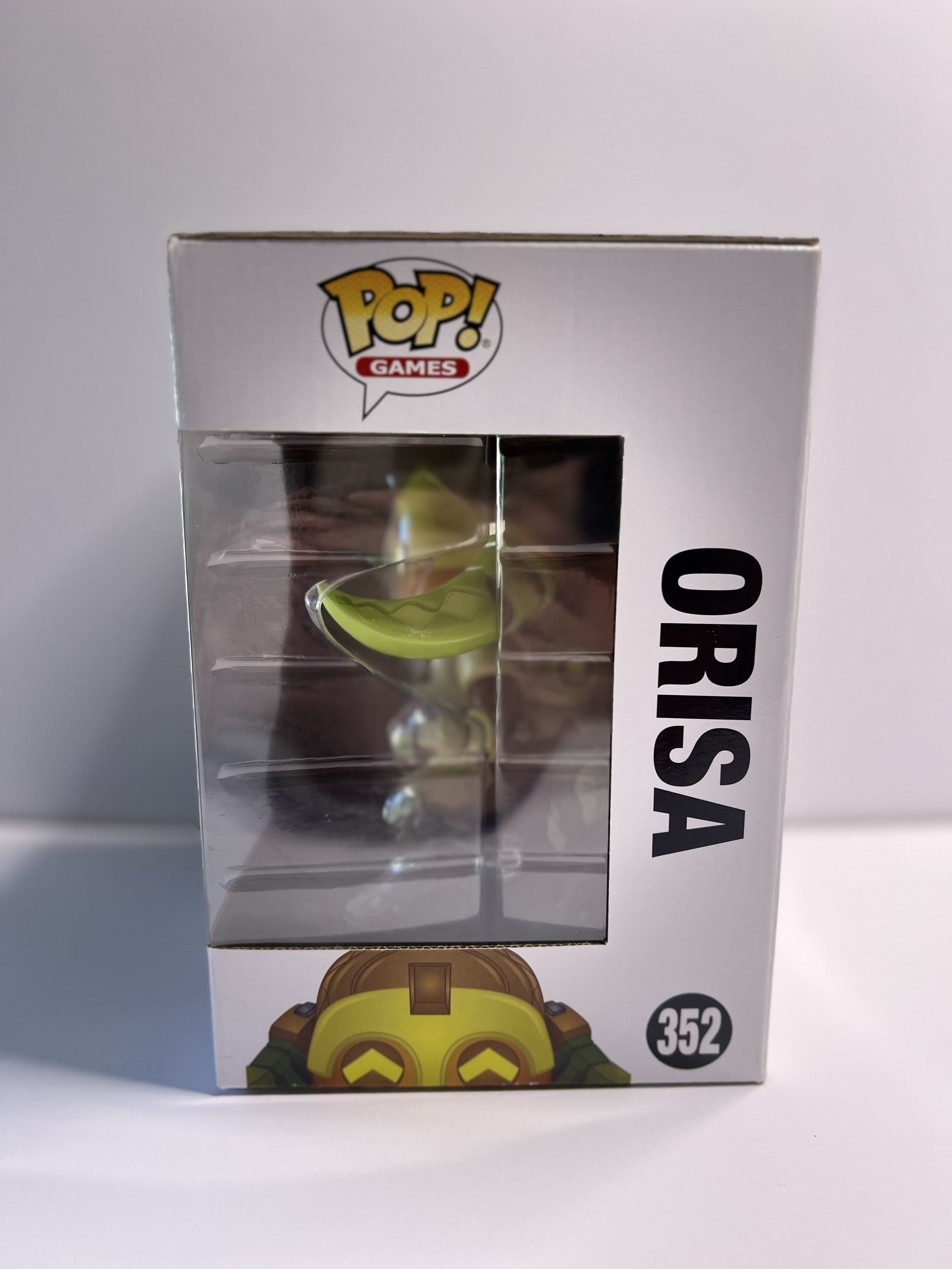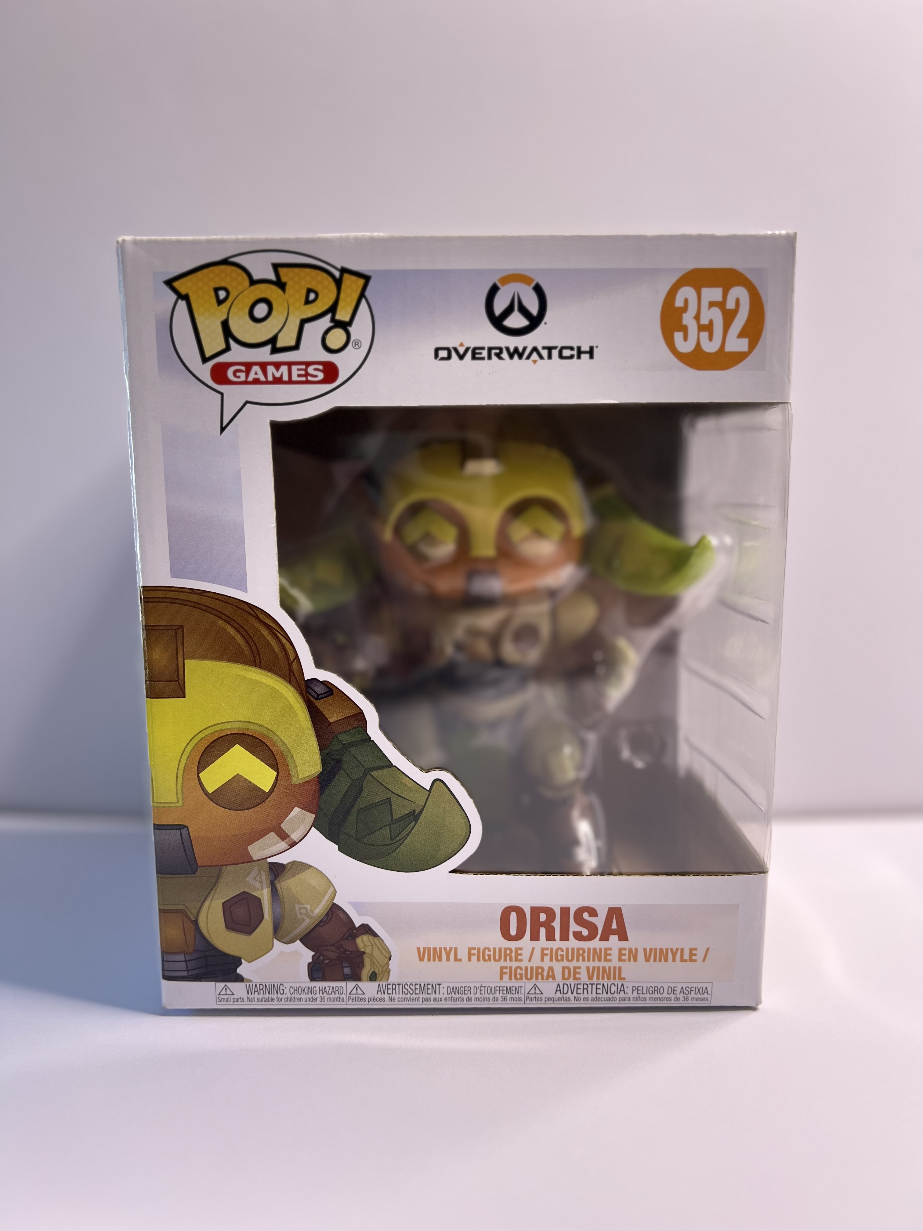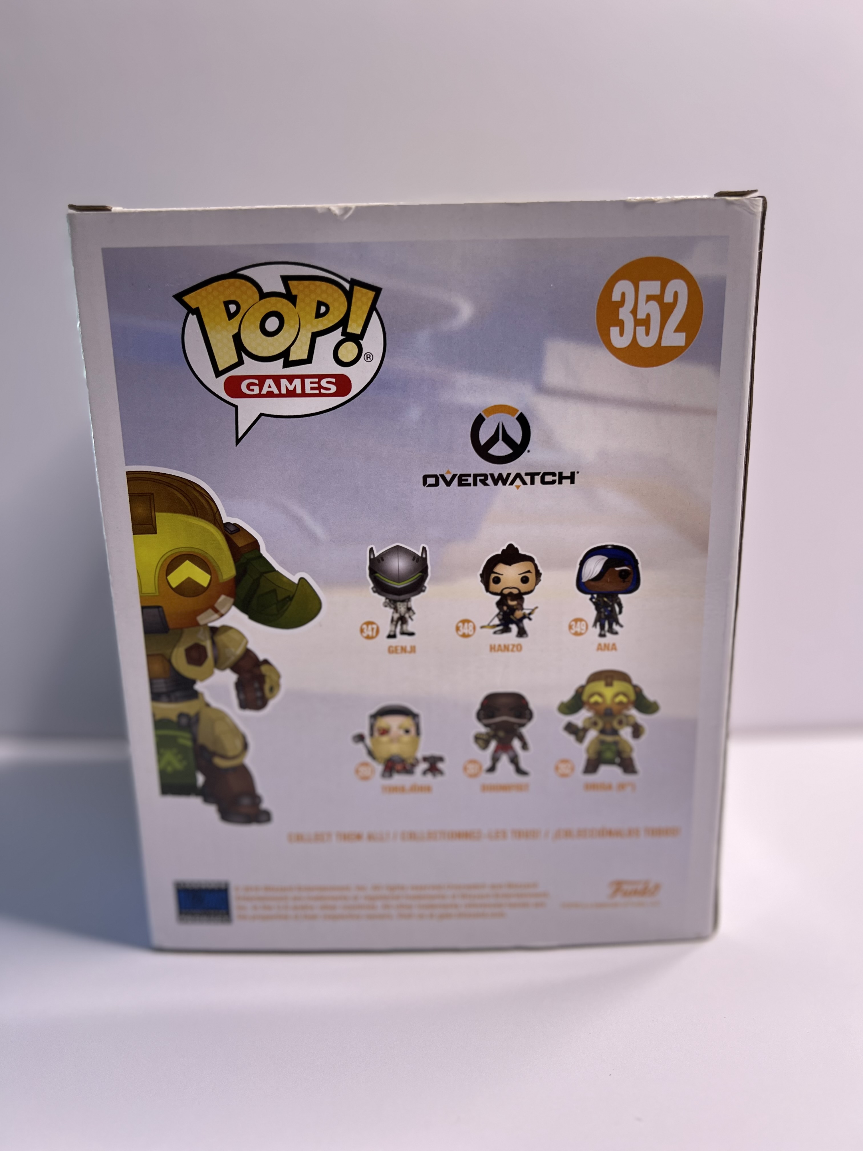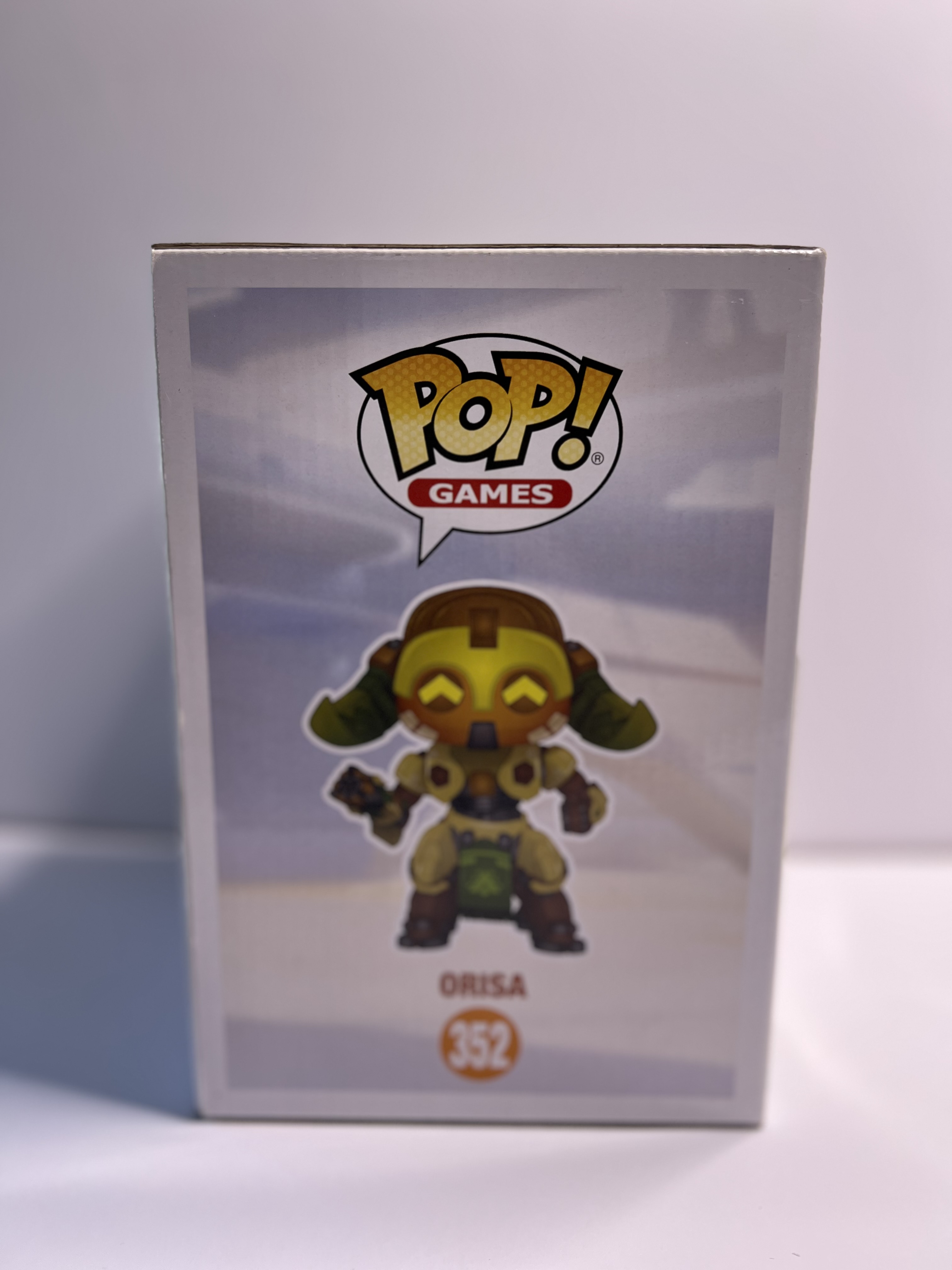 This Overwatch Pop! Games #352 figure features the noble omnic protector in all her armored glory, straight from Numbani with a face full of logic and a heart full of heroic cooldowns. Standing at 6 inches tall, she's a formidable display piece for any gaming fan. The box has visible wear with a tear on the back top edge and creasing on the front – clearly, Orisa’s been tanking more than just damage. Still holds strong for display, but not in minty-fresh condition.