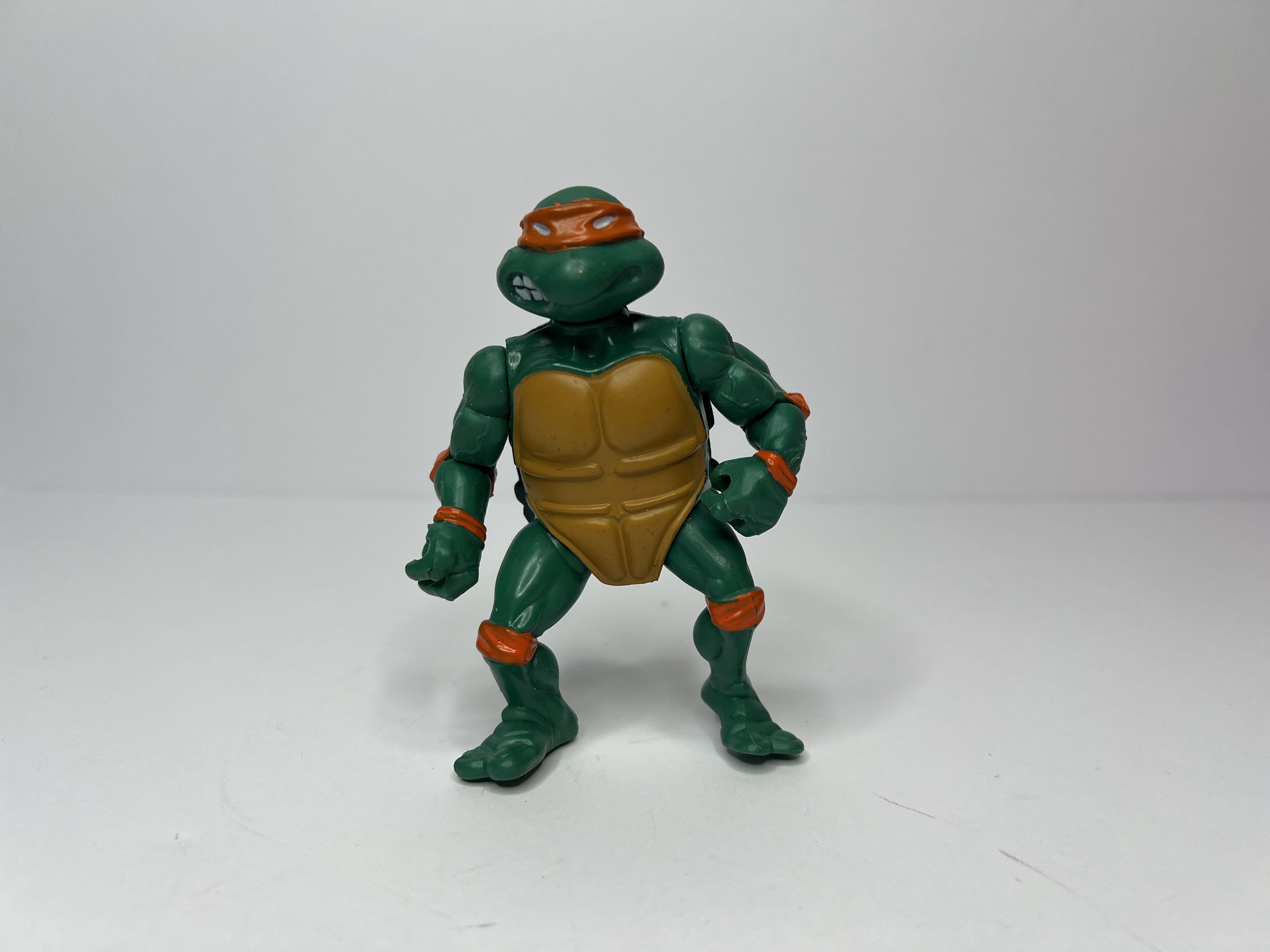 Cowabunga! This Michelangelo action figure captures the fun-loving, pizza-obsessed Ninja Turtle in his classic 80s/90s look — orange bandana, bright green shell, and a cheeky grin that says he’s ready for adventure. Whether he’s cracking jokes, pulling pranks, or diving into battle, Mikey brings that lighthearted energy to every mission. A must-have for TMNT fans and retro toy collectors!