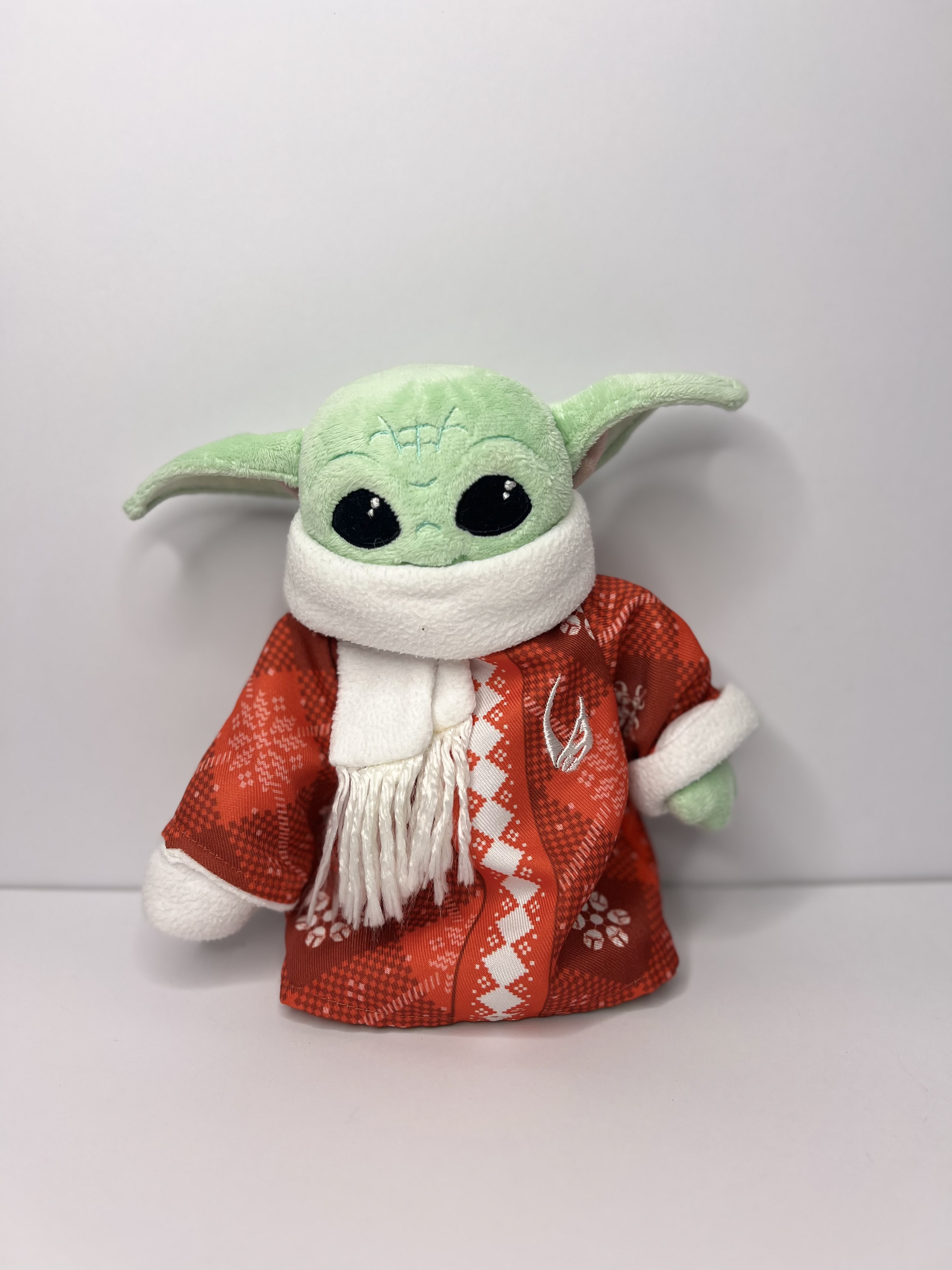 Straight from a galaxy far, far away—and straight into a snow globe scene—this holiday edition Grogu plush is bundled up in a red festive sweater and cozy white scarf. With his signature wide eyes and a look that says, “I sensed cookies,” this Baby Yoda is ready to sleigh. Perfect for seasonal shelves, stockings, or snuggling by the fire.