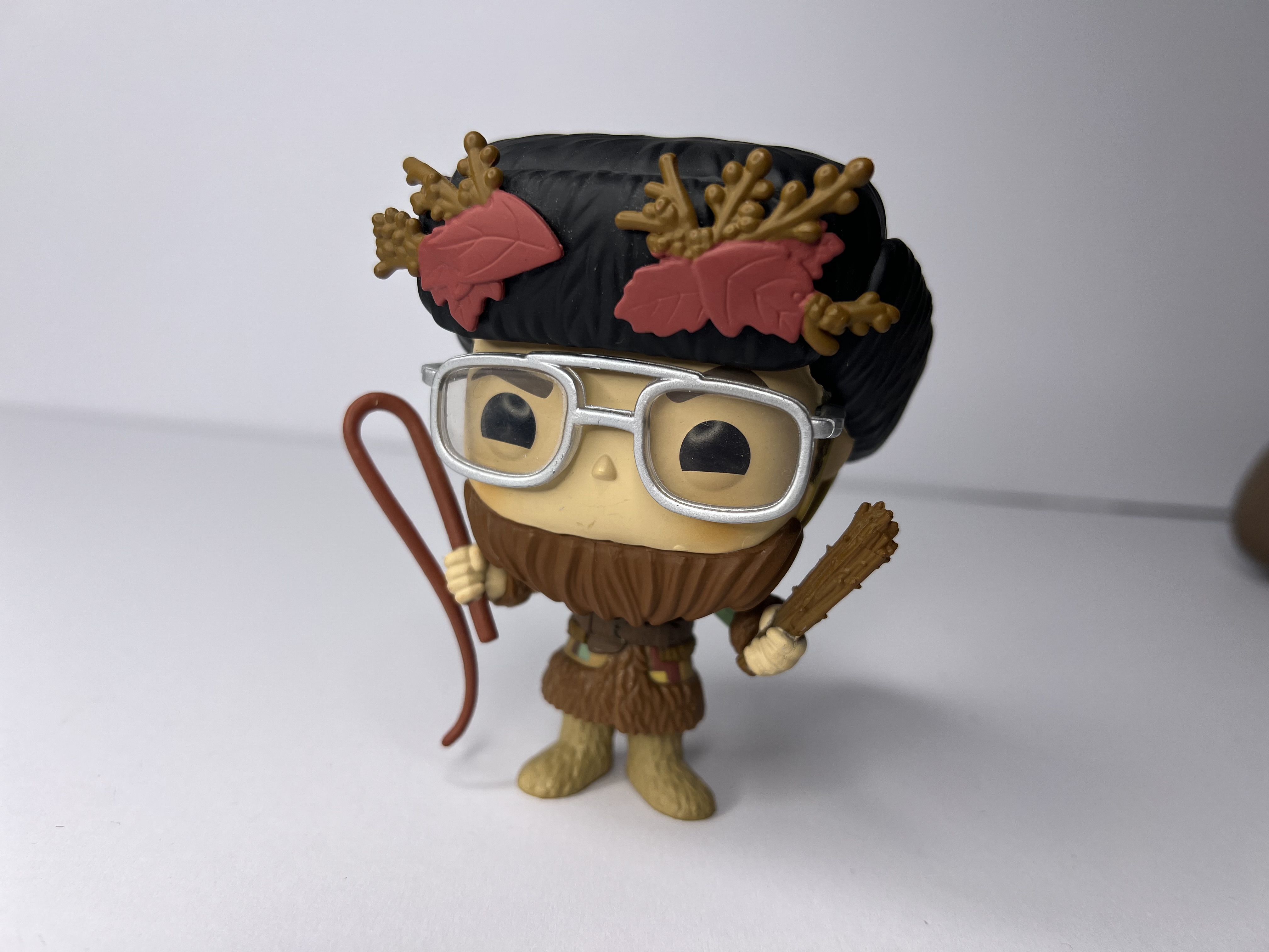 Pop! Dwight #907 emerges from The Office wilds in full hay king mode — complete with bushy beard, survival staff, and that iconic crown of leaves and twigs. Ready to reign over Schrute Farms or lead a very awkward team-building exercise, this Dwight is all bark, no chill.