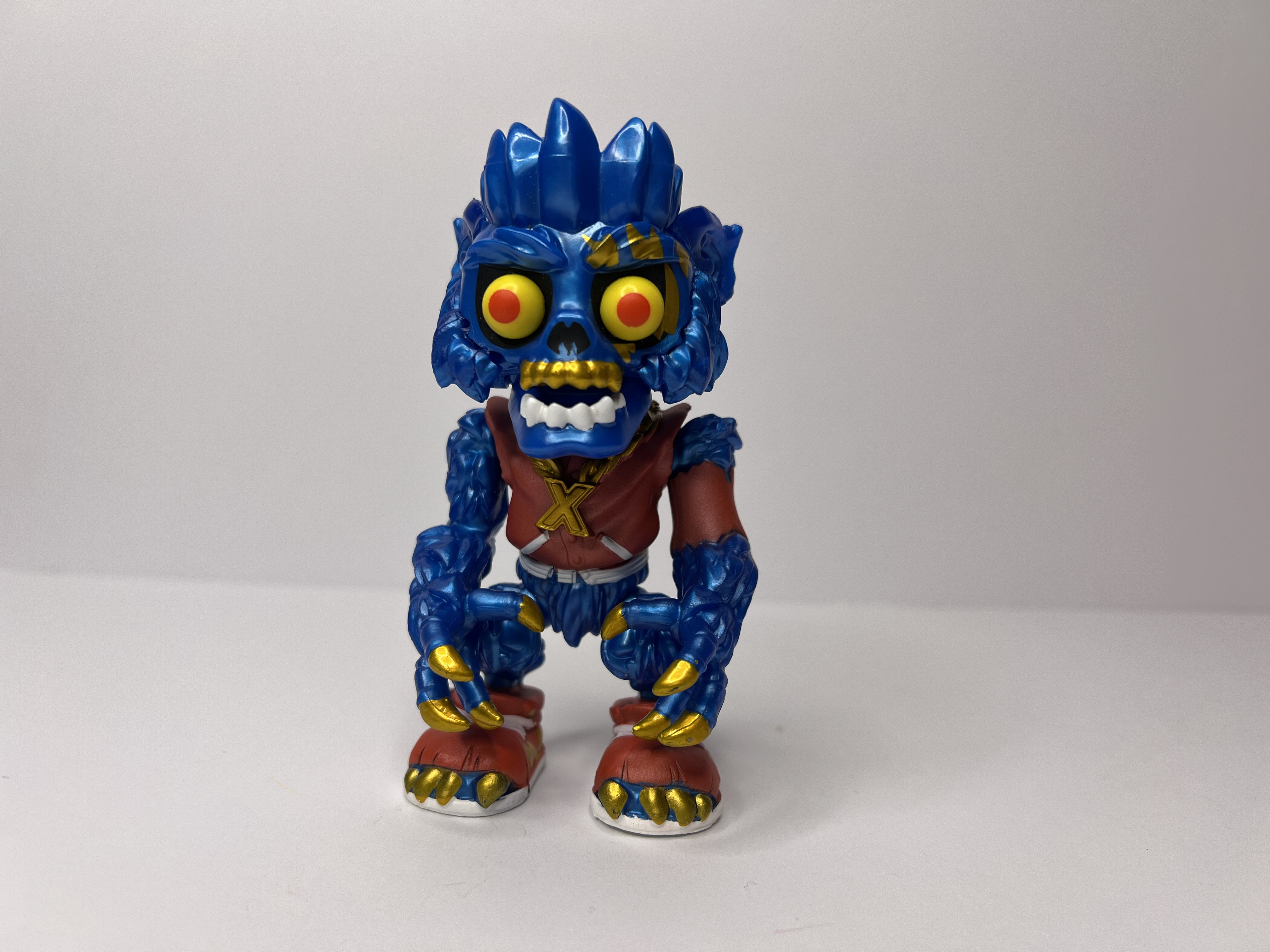 From the spooky, treasure-filled world of Treasure X comes the Monster Wolf Man — part savage beast, part shiny treasure hunter! With electric-blue fur, glaring red-and-yellow eyes, and golden claws sharp enough to crack open any loot, this feral figure is ready to sniff out riches. His tattered vest and battle-worn look tell tales of epic adventures, daring duels, and maybe a midnight howl or two. Perfect for fans who love their collectibles fierce, colorful, and dripping with personality.
